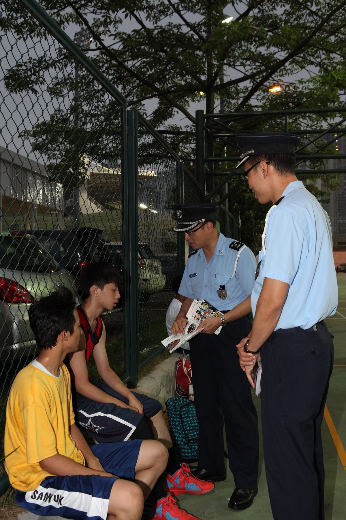 暑假臨近,治安警察局為預防在期間可能出現的青少年違法犯罪行為,是日晚上在氹仔各球場及休憩區進行防罪宣傳,向青少年派發單張、紀念品,傳遞遵守法律、潔身自愛、遠離犯罪的正面訊息;宣傳活動由公關處警司黃超文、氹仔警司處副警司張向帆以及本局宣傳小隊負責,活動過程順利。
