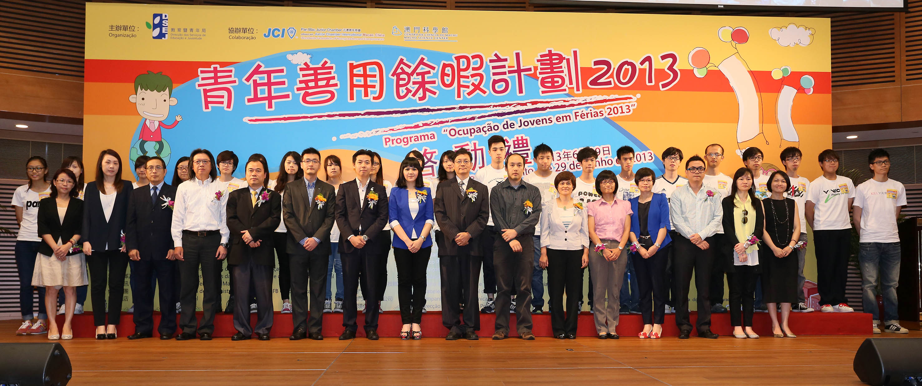 為配合及落實本年特區政府“鼓勵多元生活體驗,提升青年競爭潛能”的施政方針,同時加強青年生涯輔導工作,由教育暨青年局主辦、汎澳青年商會及澳門科學館股份有限公司協辦,並由本澳各公共部門和私營機構共同參與推行的“青年善用餘暇計劃二O一三”啟動禮於六月二十九日下午三時在澳門科學館會議中心順利舉行。