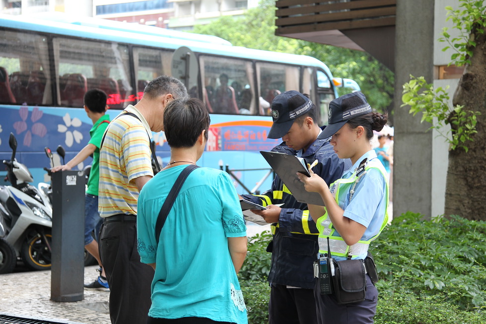 本局與交通事務局針對近期社會關注之駕駛者於斑馬線不讓行人優先通行之情況,繼續展開檢控及宣傳的聯合行動,兩局互相合作各施其職,安排前線巡邏警員於繁忙路段之斑馬線指揮交通,加強檢控於斑馬線前違規之行人及駕駛者,而交通事務局則派出交通督導員向行人宣傳使用行人過路設施,期望以宣傳教育和懲處相結合,提升市民交通安全意識和重視。從而減少交通意外的發生。繼早前兩次的聯合行動,效果理想,今日早上十一時兩局於蘇亞利斯博士大馬路一帶進行交通安全行動,而打擊違規行動將持之以恆於定期不定點方式進行,以維護居民的出行安全。