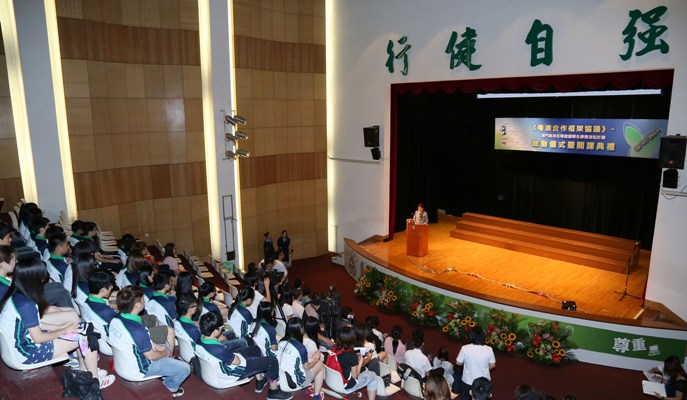 梁勵局長在啟動儀式暨開課禮上表示,七月十五日是澳門歷史城區被列入世界文化遺產名錄的八周年紀念,值得澳門人自豪。在粵就讀學生學費津貼是特區政府落實《粵澳合作框架協議》的重要舉措,教青局與廣東省珠海市教育局和中山市教育局密切合作,令計劃得以順利實施。梁局長感謝廣東省教育部門的鼎力支持,亦感謝澳門文物大使協會,以及負責編纂及講授課程的八名教學人員,包括蕭志鴻、何佩芝、陳秀珠、梁葉春、岑婉華、李惠鸞、岑詩韻、陳敬濂的熱心協助,同時希望參與的同學能好好把握難得的學習機會,加深對澳門社會的了解和認識,並學以致用,將來服務於澳門社會。