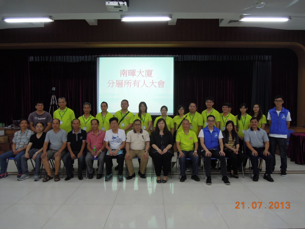 於7月21日晚,透過房屋局、澳門街坊會聯合總會、民眾建澳聯盟、澳門物業管理業商會及澳門物業管理專業人員協會代表協助下,「南暉大廈」按《民法典》規定召開分層所有人大會,並有149個單位業主出席,出席率約27%,順利選出新一屆由13名業主組成的管理委員會,議決選出管理委員會成員,授權管理委員會透過公開招標聘請管理公司,以及有序處理大廈面臨的維修事宜。