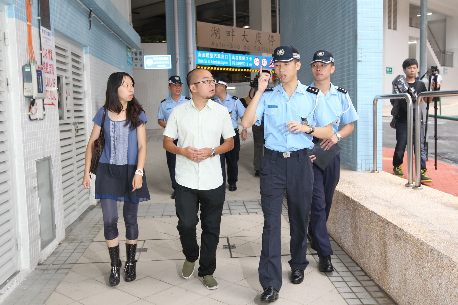 是次巡察由本局海島警務廳氹仔警務警司處副警司李德輝及行動廳公關處副警司余志華率警務人員一行十人,與街總離島辦主任鄭煜、氹仔坊會副理事長阮若華、街總氹仔社區中心主任黃雪儀、以及街總離島社諮委代表江旭純和程順明等一行七人,到湖畔大廈和花城一帶接觸前線管理員及街坊住客,了解區內治安交通環境狀況,聆聽訴求,並派發各種防罪和交通安全小冊子及張貼海報。