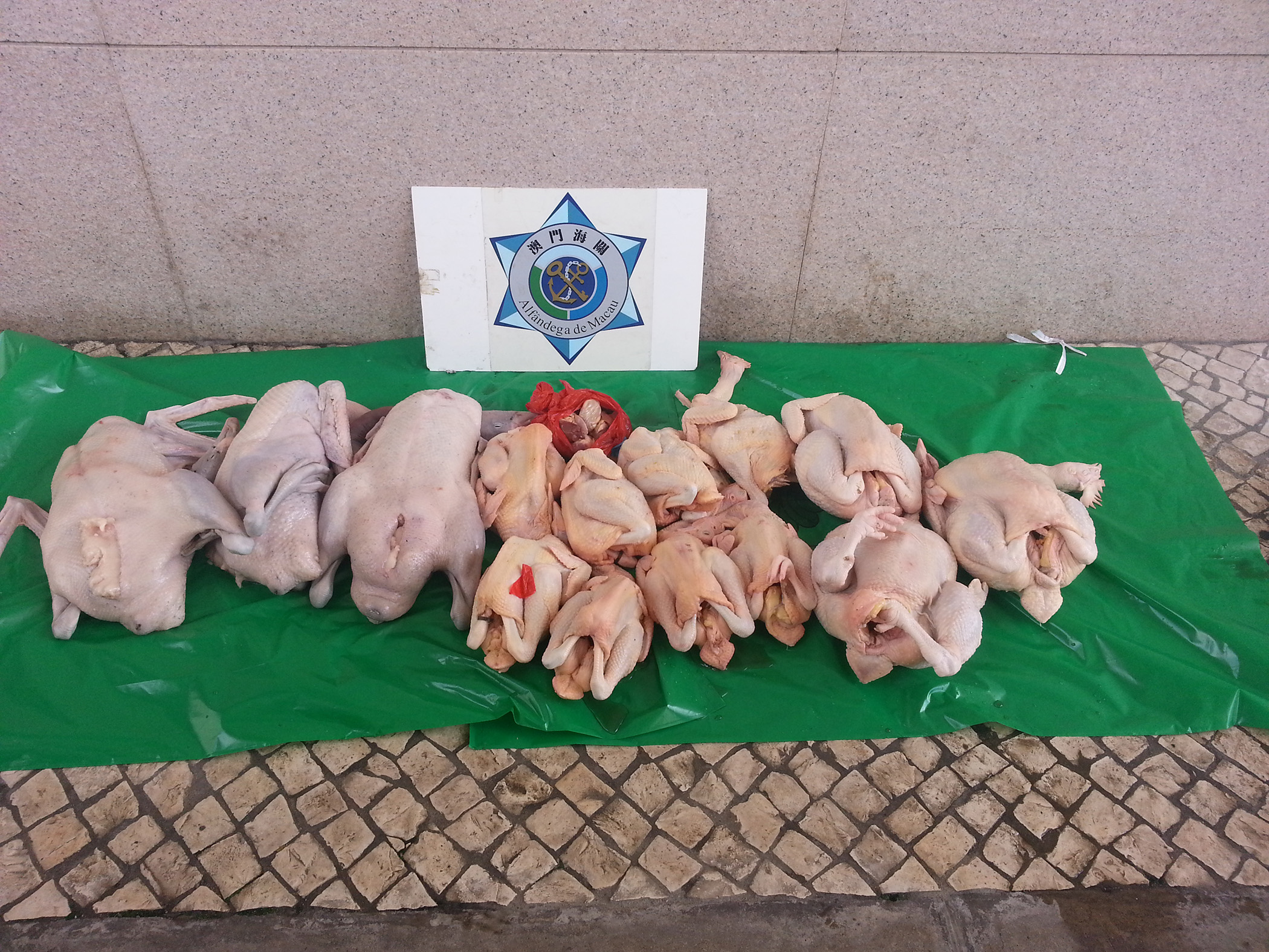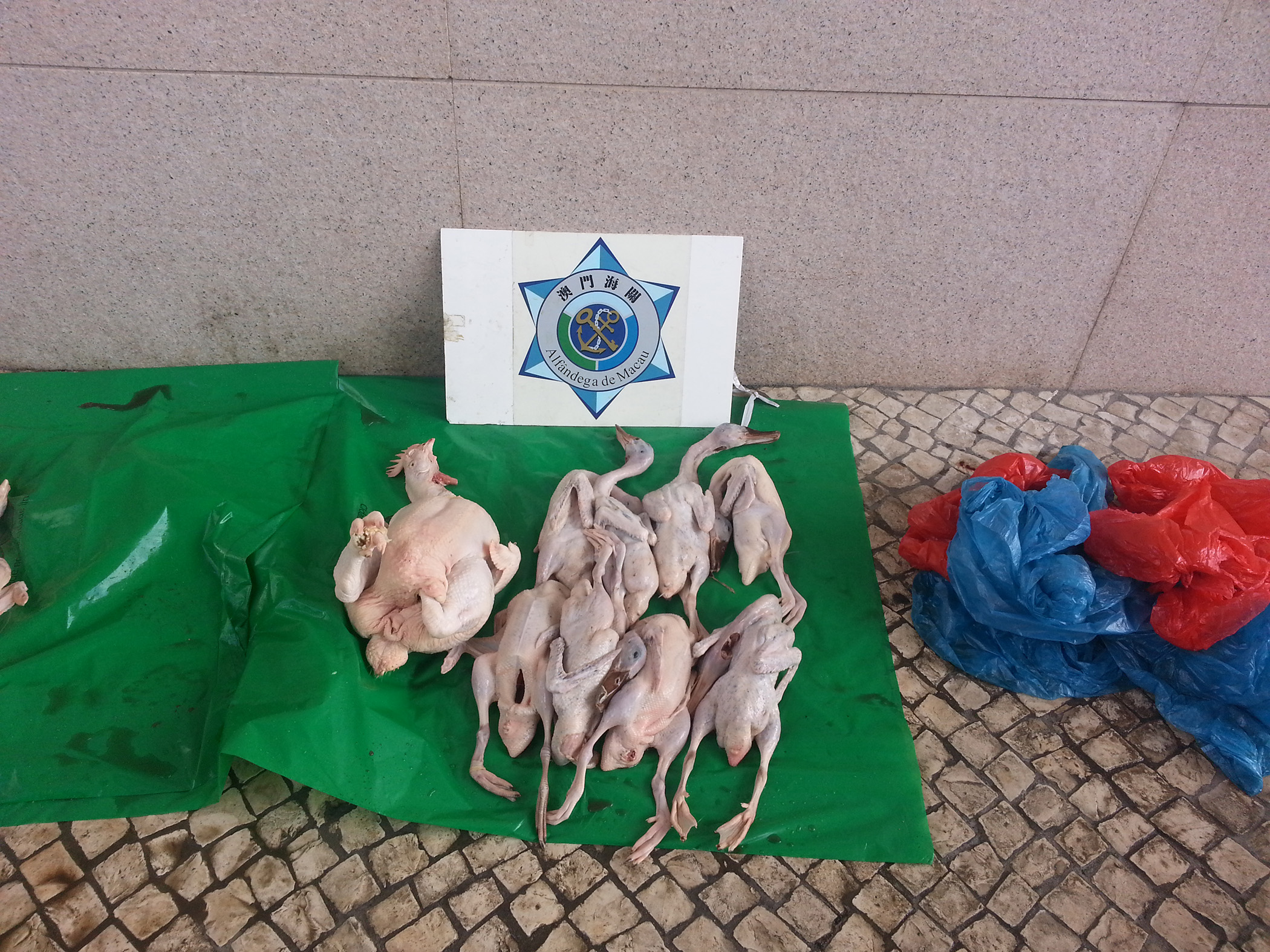 針對一些未經檢疫的肉類流入澳門,昨天(8月7日)澳門海關行動管理廳關員共緝獲三宗非法進口已宰家禽的案件,共檢獲29公斤雞隻,5公斤水鴨,14公斤鵝,全部為未經檢疫之鮮宰家禽。有3名本澳男子和1名持有中華人民共和國往來港澳通行證的女子被邀往海關總部協助調查。