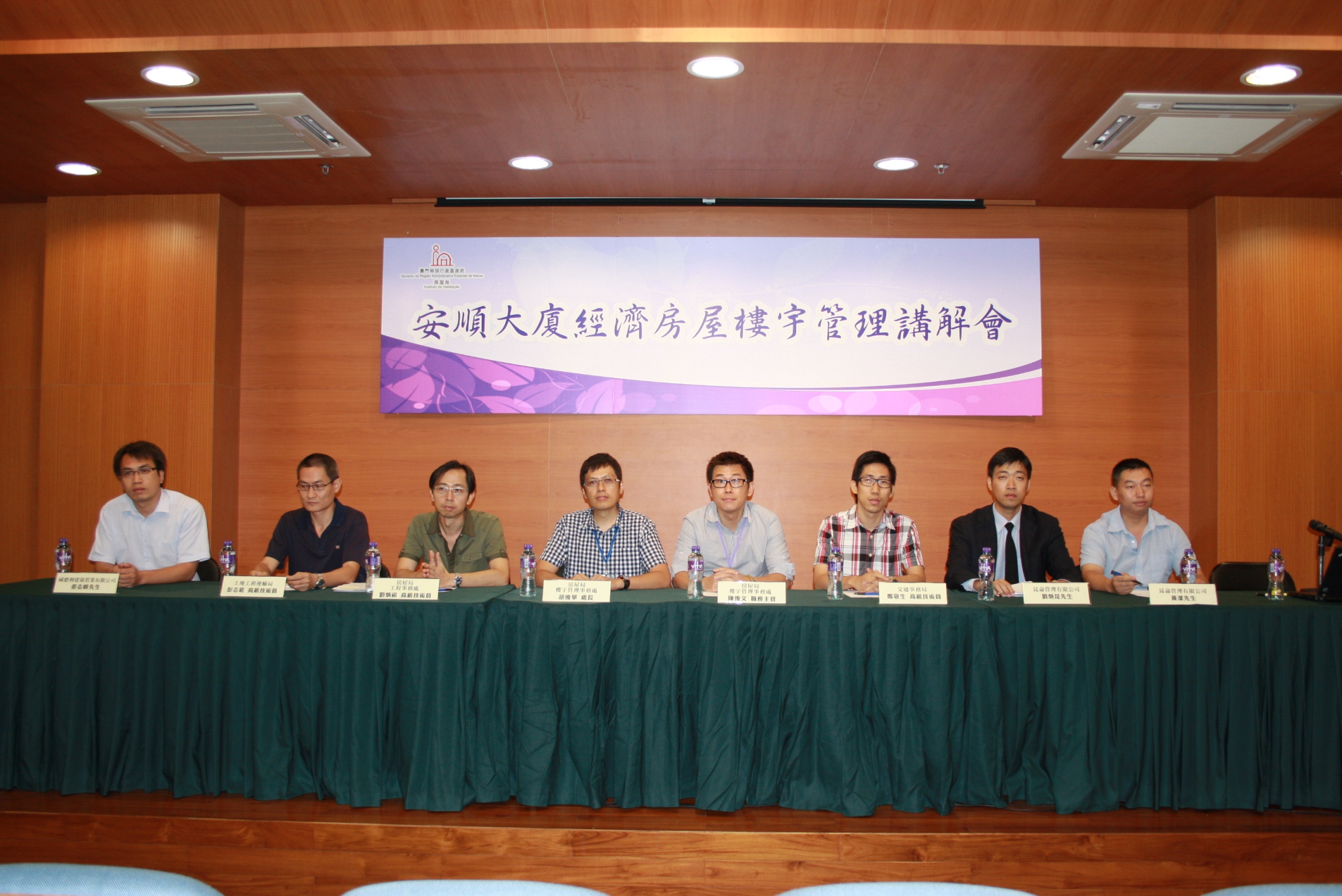 安順大廈經濟房屋樓宇管理講解會由房屋局主辦,並邀請交通事務局、勞工事務局、安順大廈天然氣設施營運商以及管理公司作介紹,土地工務運輸局、燃料安全委員會、發展商及承建商亦派代表出席。