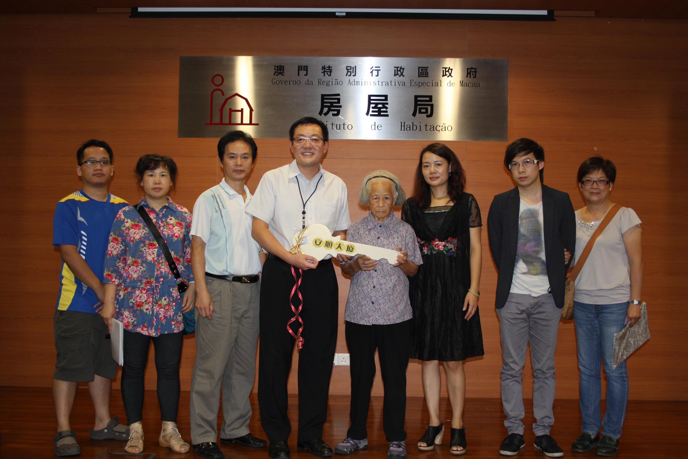 房屋局今(22)日舉行“安順大廈首批業主上樓儀式”,並特別安排首批安順大廈準業主在房屋局辦理支付樓款手續後,往安順大廈現場接收單位鎖匙及進行參觀。