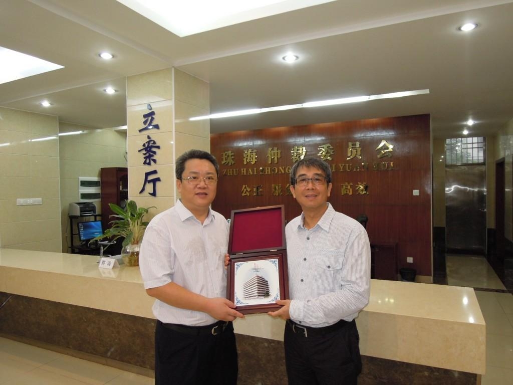 房屋局局長兼樓宇管理仲裁中心仲裁委員會主席譚光民率領仲裁委員會成員,聯同消費者委員會主席黃翰寧及澳門世界貿易仲裁中心馮健埠律師等代表等一行28人,於本月23日拜訪珠海仲裁委員會,並共同舉辦仲裁經驗交流座談會,就有關樓宇管理及消費糾紛的調解、仲裁工作,進行深入的探討與交流,期間,獲珠海仲裁委員會主任高樹林等領導熱情接待。