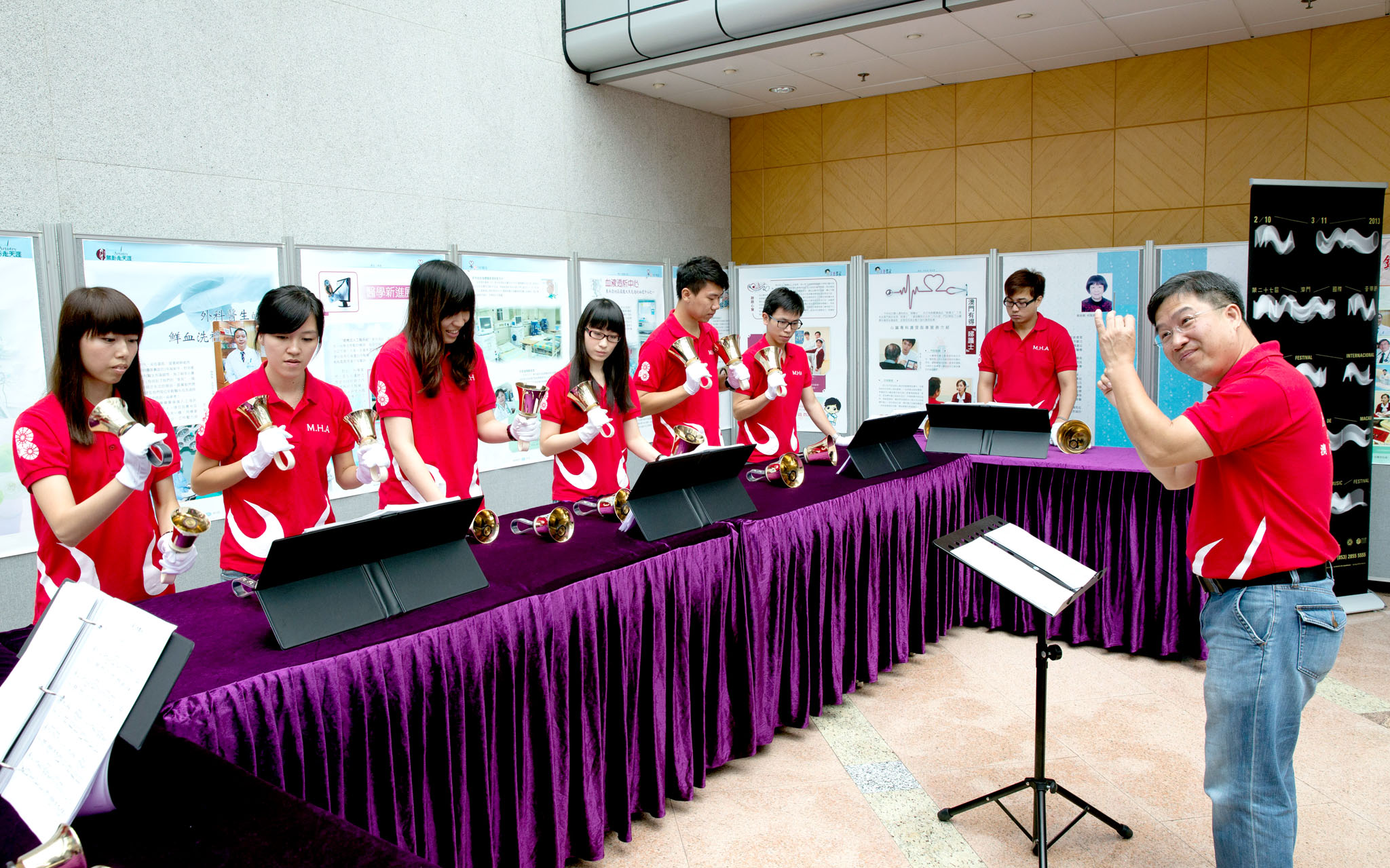 首場“處處有音樂”社區推廣活動由澳門手鈴協會演出,日前他們一行十人於鏡湖醫院第一門診大堂近入口處設置簡單舞台,演譯多首樂曲,現場正等待候診及待領藥之居民紛紛駐足欣賞。期間,樂團指揮石世華更向觀眾講解手鈴的特點,又與在場小朋友互動合奏,讓他們一嘗演奏手鈴及擔任指揮的滋味,小朋友都顯得非常雀躍,熱情投入於表演之中。