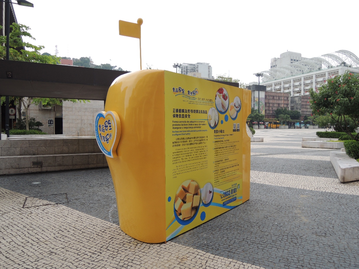 維護食品安全是澳門特區政府一項十分重要的工作,為進一步加強公眾的食品安全意識,民署繼去年推出兩項大型戶外宣傳模型後,本季度再以日常食品為設計概念,推出了兩個“食安大芝士”戶外宣傳模型,提醒市民避免因不當貯存及處理而導致乳製品變壞,誤食後造成身體不適。