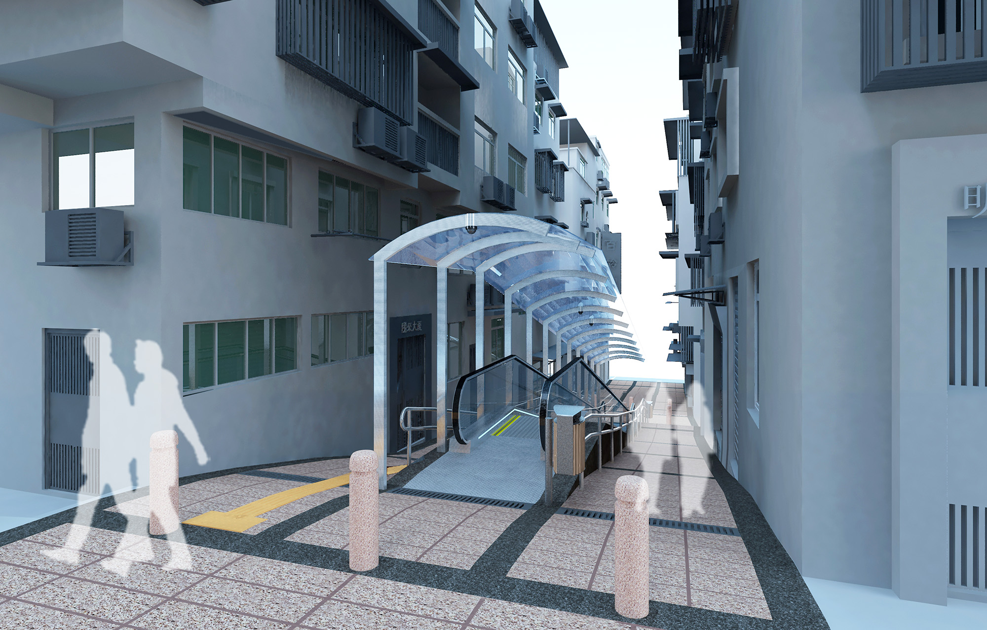 在系統設計上,自動扶梯會與周邊環境協調,建造時亦會美化街道環境,包括鋪設防滑地磚等。考慮到街道兩旁多是住宅大廈,系統的頂蓋將採用圓拱形設計及使用輕質材料,不可承托成人重量,以防有人攀上頂蓋,起到保障居民人身及財產安全作用之餘,也不會阻礙消防救援。