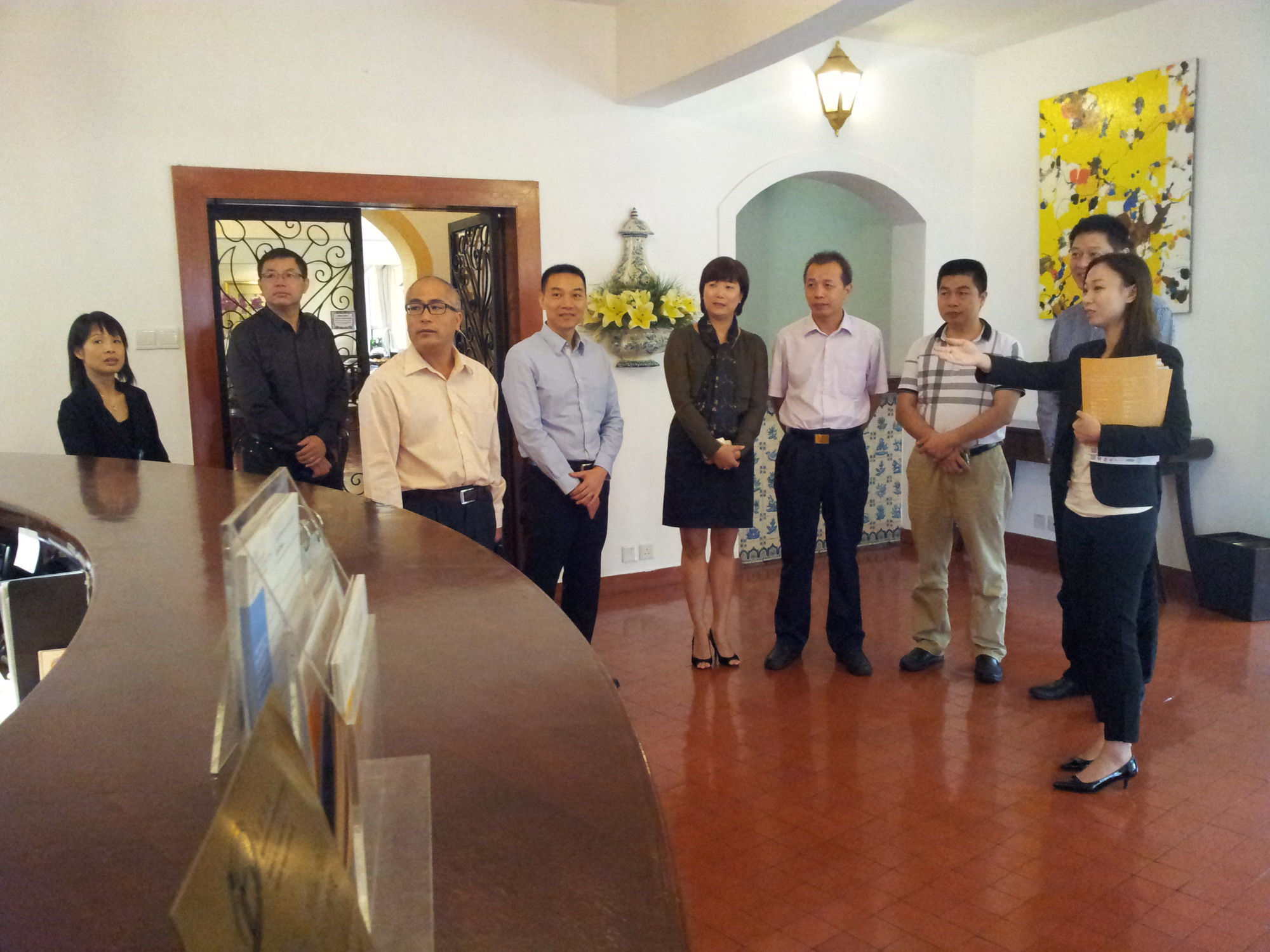 繼旅遊學院與廣州市南沙區教育局於6月14日舉行的 「2013年粵澳合作聯席會議」上簽署《職業教育合作框架協議書》後,廣州市南沙區政府代表團於10月18日到訪旅遊學院,冀能進一步學習學院之辦學模式,從而提昇其教學團隊的質素,推動兩地旅遊酒店職業技術教育互補交流。到訪代表團人員包括:廣州市南沙區經貿局周海副局長、保稅業務管理局曾鐳副局長、教育局陳願副局長、凌耀東科長、黃向榮老師、嶺東職業技術學校劉為民副校長及蘇炳權主任等。