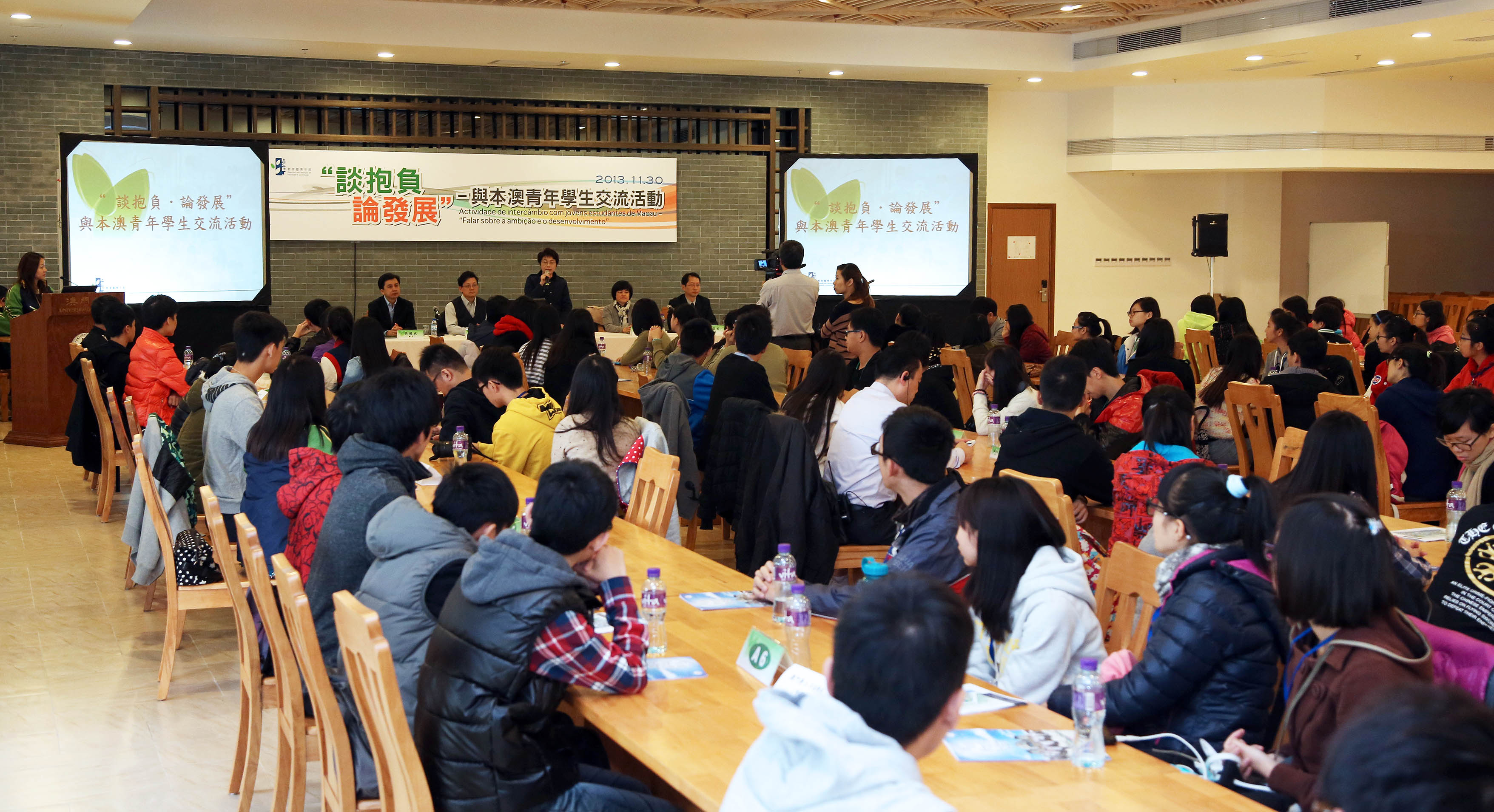 教育暨青年局於本年十一月三十日(星期六)舉辦了 “談抱負.論發展” ─與本澳青年學生座談交流活動,組織了約百名青年學生參加,氣氛熱烈。