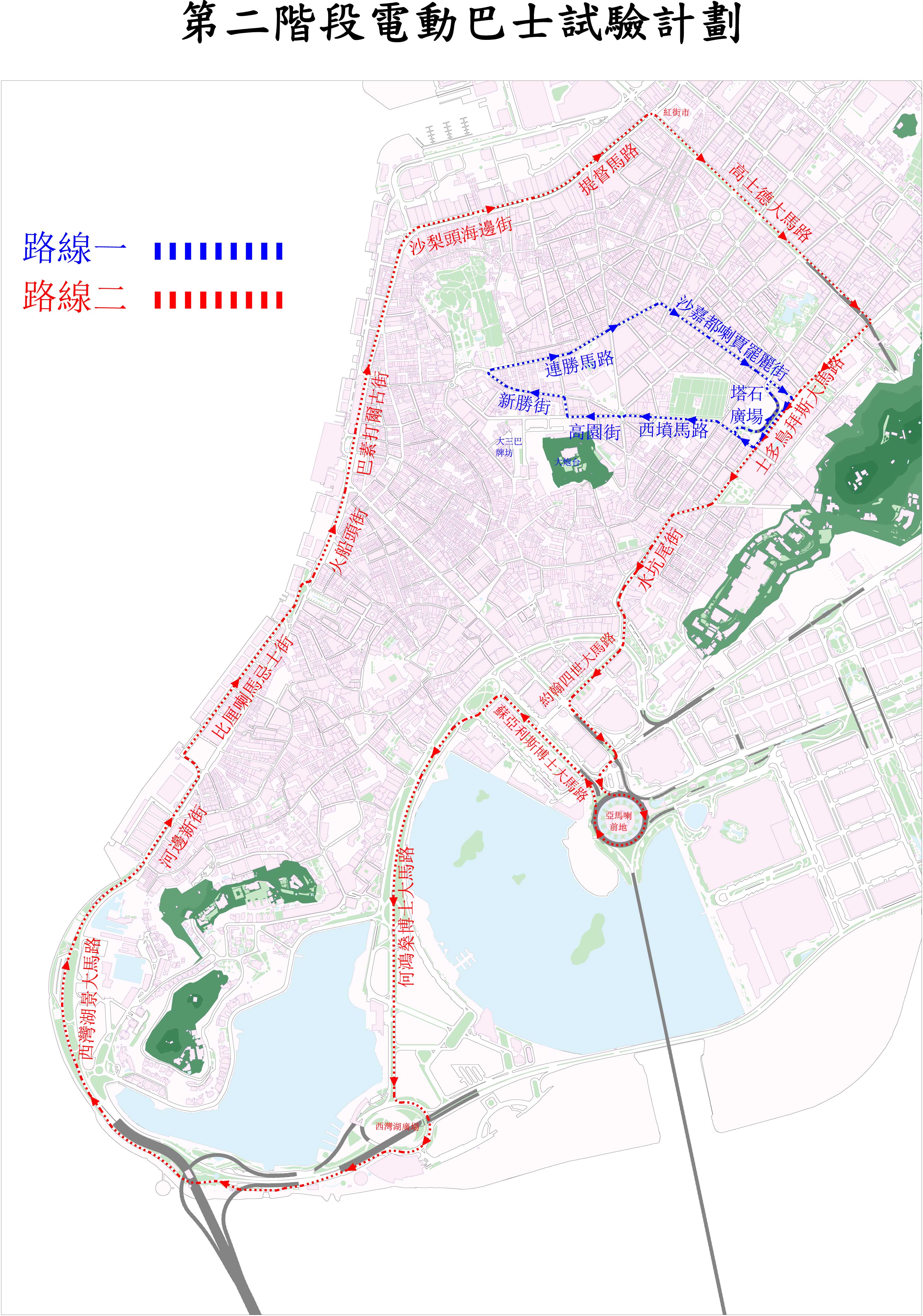 特區政府為推動電動車輛在本澳的發展,減少車輛的廢氣排放,交通事務局於今年7月開展首階段電動巴士試驗計劃,引進首台電動巴士在路況較寬闊、平坦的路氹城區進行載客實地測試,以檢視電動巴士的安全性和營運效能等。然而,由於本澳部分區域的道路彎多路窄,為使電動巴士測試計劃更為全面,且推動落實《澳門陸路整體交通運輸政策(2010-2020)》內有關在歷史核心區及舊城區引入環保接駁運具的工作,並推動實現《澳門環境保護規劃(2010-2020)》在「加強大氣污染控制及管理」範疇中提出的“推動採用更環保的公共巴士”行動計劃,因此交通事務局與環境保護局由明日(19日)起開展第二階段電動巴士試驗計劃。