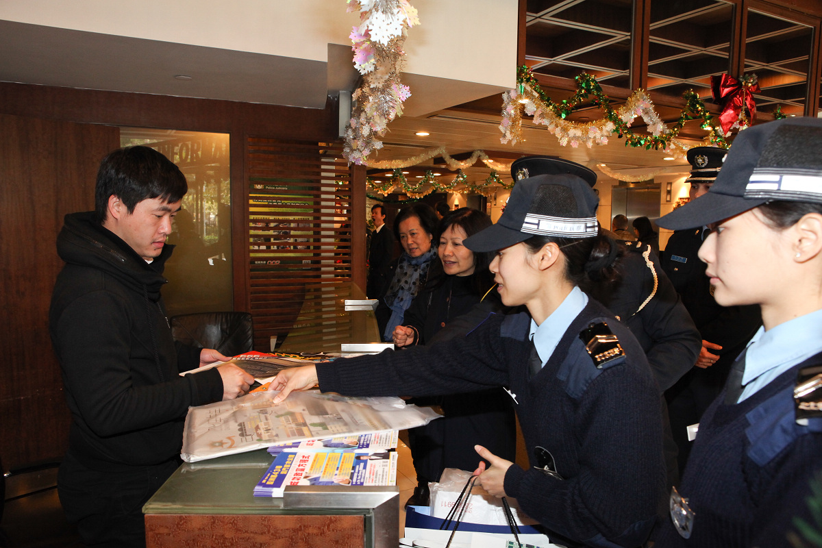 新的一年即將到來,為配合各項相應的治安防範工作,治安警察局加強對本澳社區的接觸,由十二月初開始,本局宣傳隊頻繁到本澳及離島警區進行大廈防罪、店鋪防盜等宣傳。