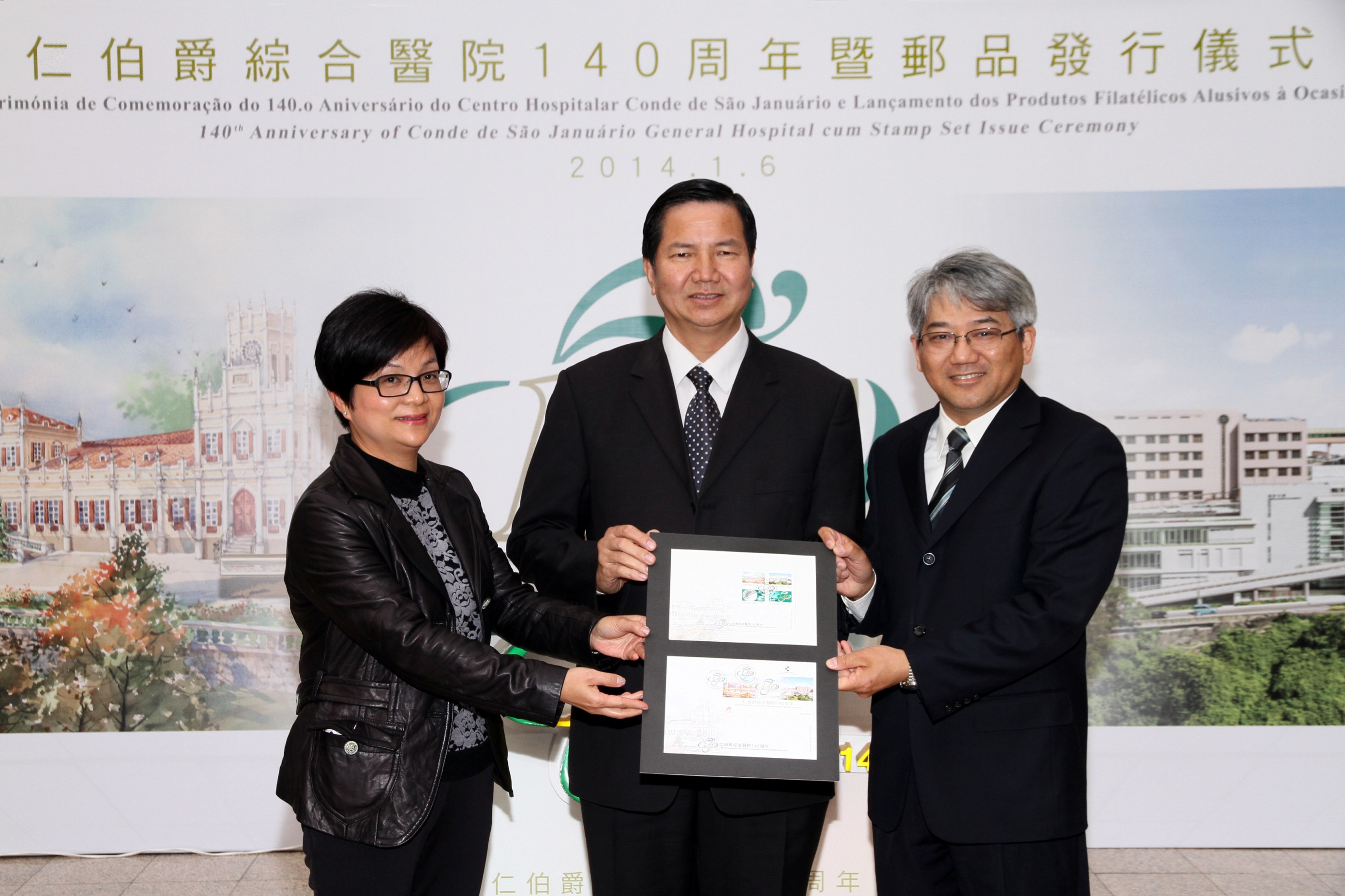 仁伯爵綜合醫院於今日(1月6日)舉行140周年暨郵品發行儀式,亮燈儀式由社會文化司張裕司長、社會文化司司長辦公室梁明慧代主任、衛生局李展潤局長、郵政局劉慧明局長及仁伯爵綜合醫院陳惟蒨院長主持。李展潤局長及劉慧明局長於儀式上,向張裕司長致送仁伯爵綜合醫院140周年郵品。張裕司長亦聽取了仁伯爵綜合醫院近年醫療成果的介紹。