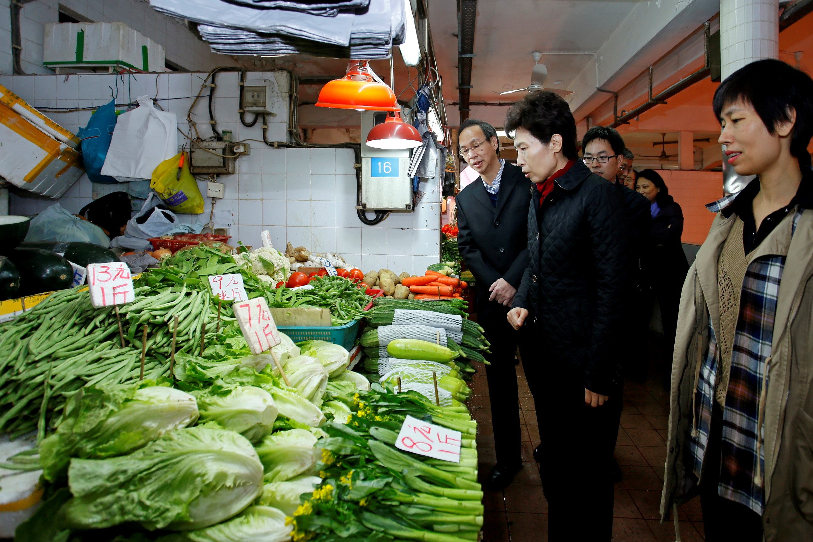 • 商務部高燕副部長和民政總署管理委員會代主席羅永德視察祐漢街巿農副產品供應情況。