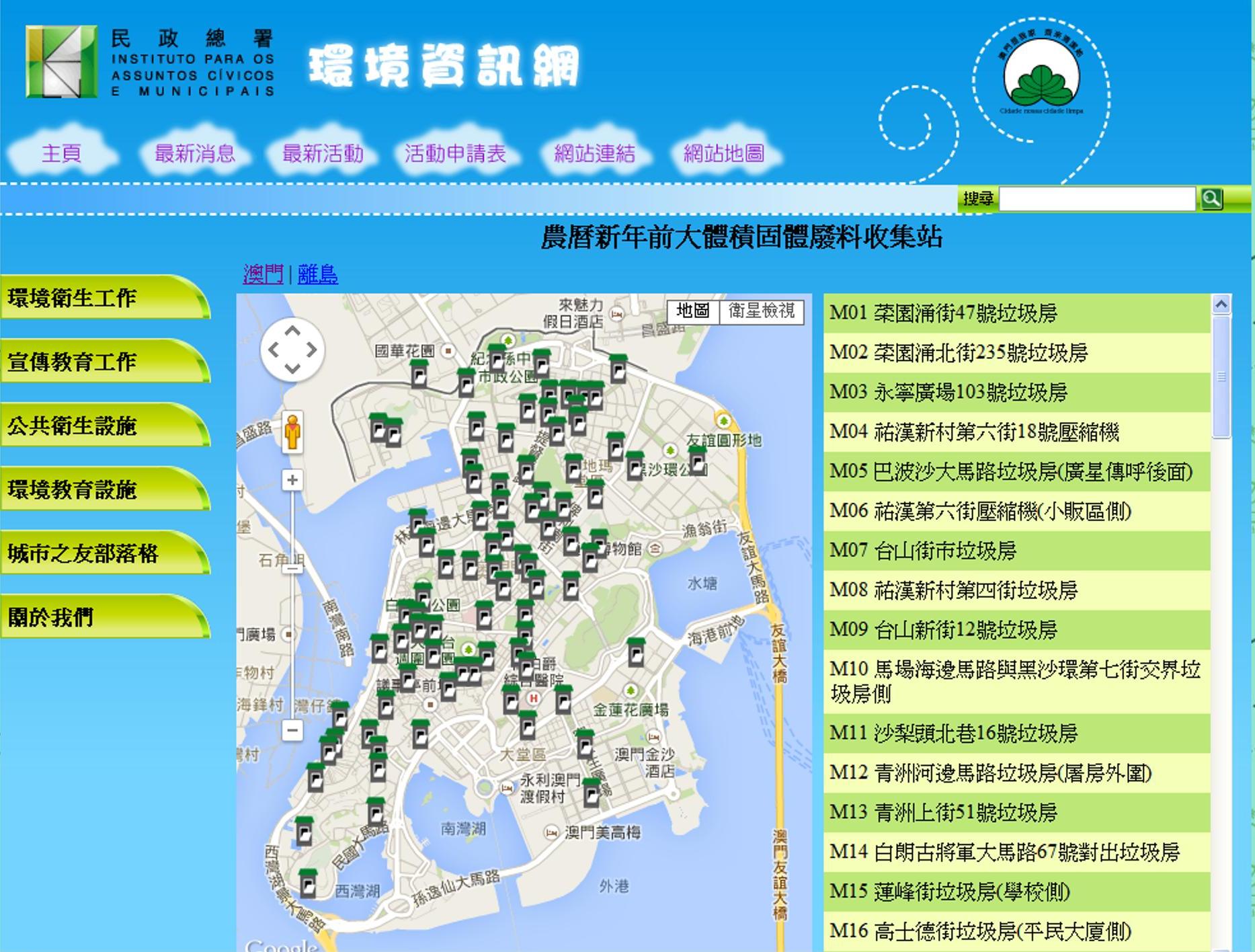 因應農曆新年前夕市民有大掃除的習慣,垃圾量會相應增加,為確保城市清潔,民政總署聯同清潔專營公司於一月十七日至三十日(年十七至除夕)期間,在澳門和離島區設置了一百個臨時大體積固體廢料收集站,方便市民棄置大體積的固體廢物,同時亦會加強收集及清理垃圾的工作。