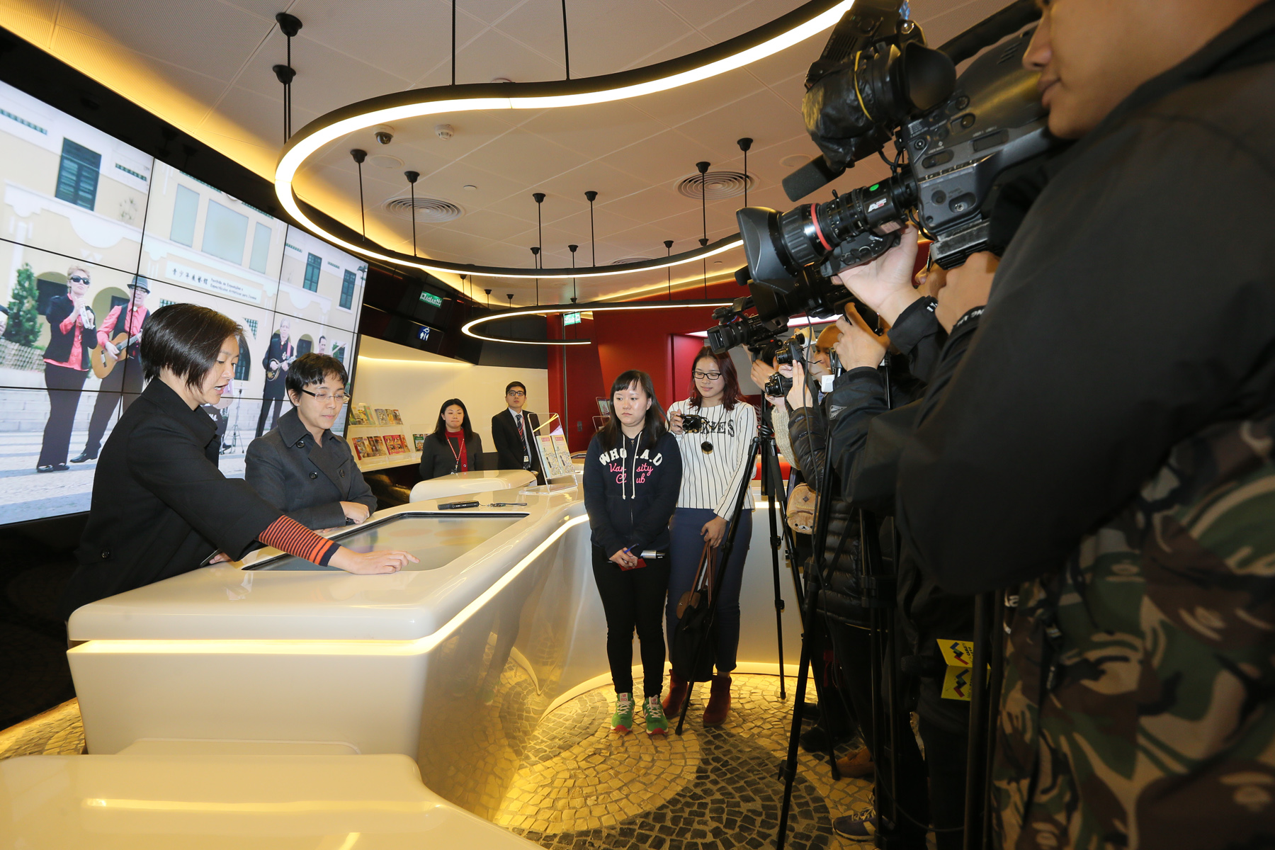 旅遊局局長文綺華及相關主管等今(27日)於外港客運碼頭的旅客詢問處介紹全新的詢問處設備。以開放式設計的詢問處除了有職員接待旅客查詢外,還有多媒體設備供旅客搜尋實用旅遊資訊,無障礙設施及空間為行動不便的旅客提供了更便捷的環境。