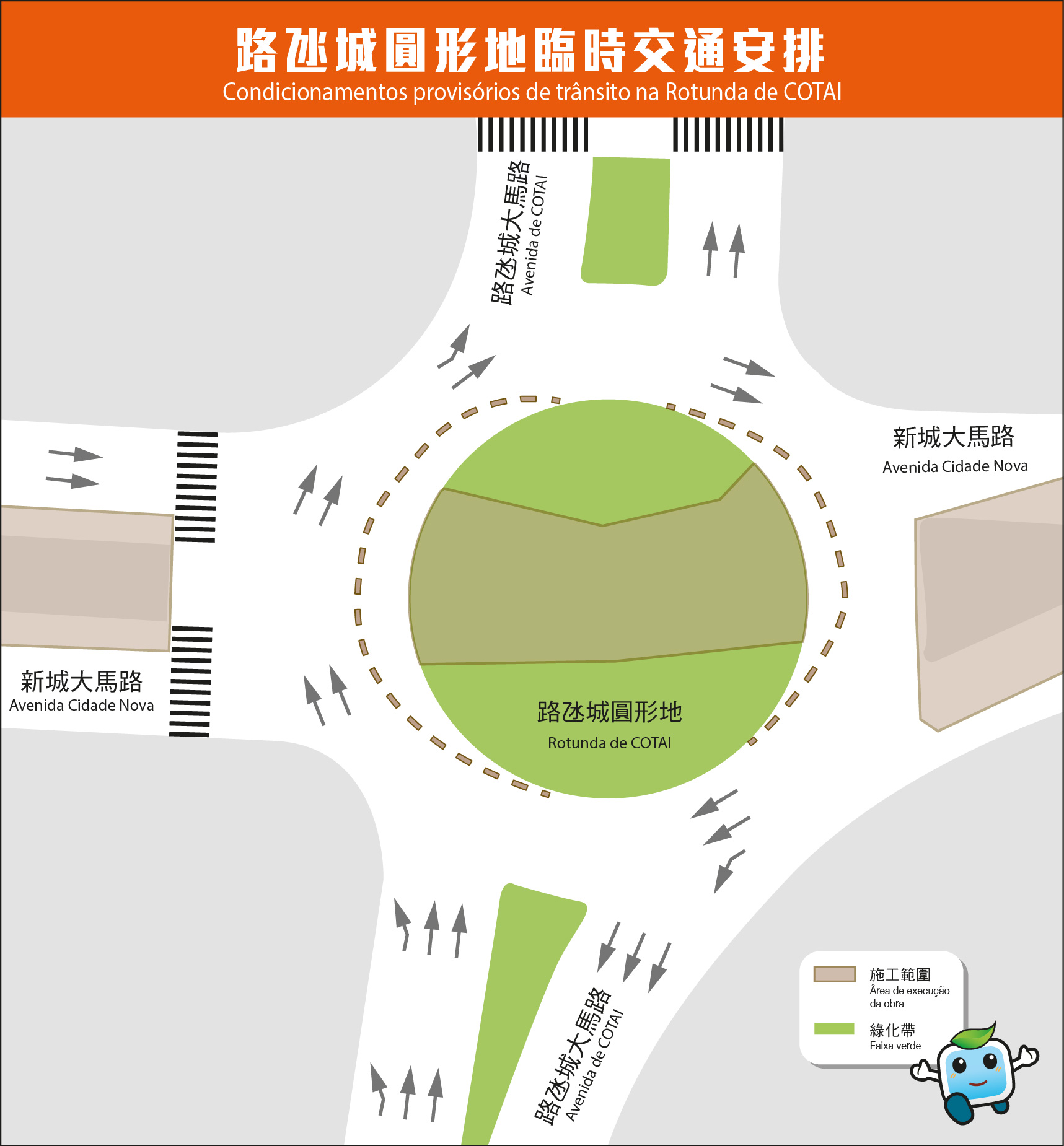 因輕軌工程推進,氹仔新城大馬路與望德聖母灣大馬路交界以及路氹城圓形地,由周六起實施有限度通車。運輸基建辦公室及交通事務局呼籲公眾留意現場臨時交通安排及指示。