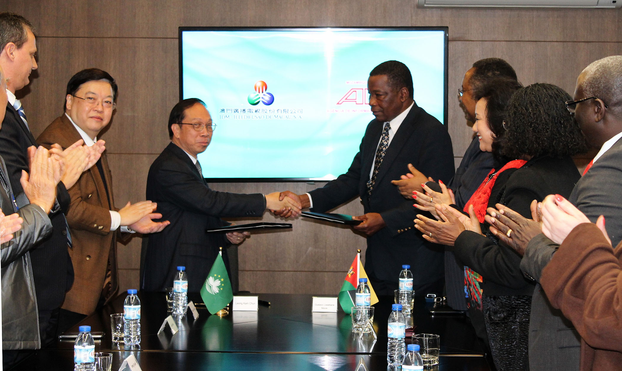 有關協議由澳門廣播電視股份有限公司執行委員會主席梁金泉與莫桑比克新聞社社長古斯達夫‧利斯迪安‧馬菲分別代表其機構簽署。中葡論壇常設秘書處副秘書長(葡語國家代表)馬塞羅、副秘書長(澳門特區政府代表)姍桃絲、佛得角派駐代表馬里奧‧維森特、幾內亞紹派駐代表馬立文及莫桑比克派駐代表伊斯梅爾逹參與了簽署儀式。