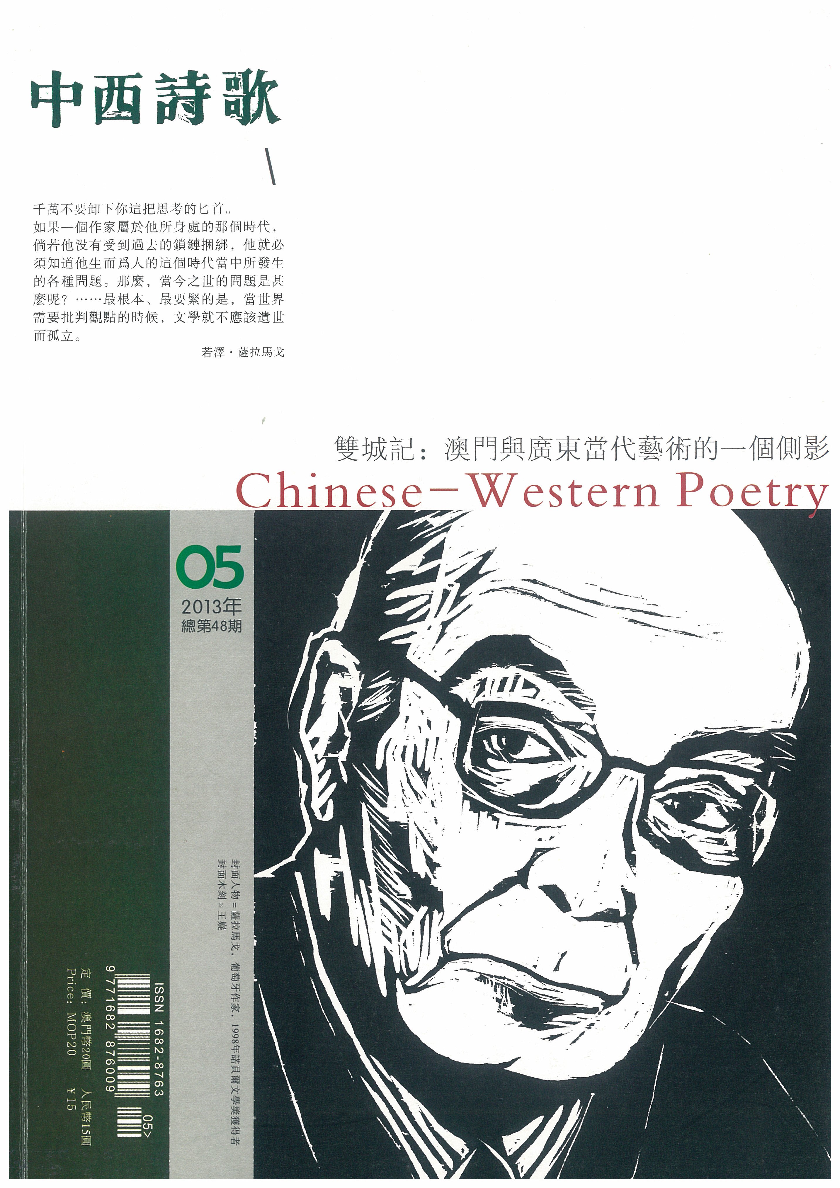 《中西詩歌》第48期的經已由澳門基金會、廣東省作家協會詩歌創作委員會、珠海市作家協會聯合出版。該期《中西詩歌》為當代藝術專刊,除原設的詩歌欄目外,新增了介紹澳、粵兩地的當代藝術欄目,與讀者一同回顧過去一年兩地當代藝術的發展狀況。該期亦首次以圖文並茂的方式,彰顯文學與不同藝術形式的聯合力量,銳意打造一個結合詩歌與藝術的文化交流平台。
