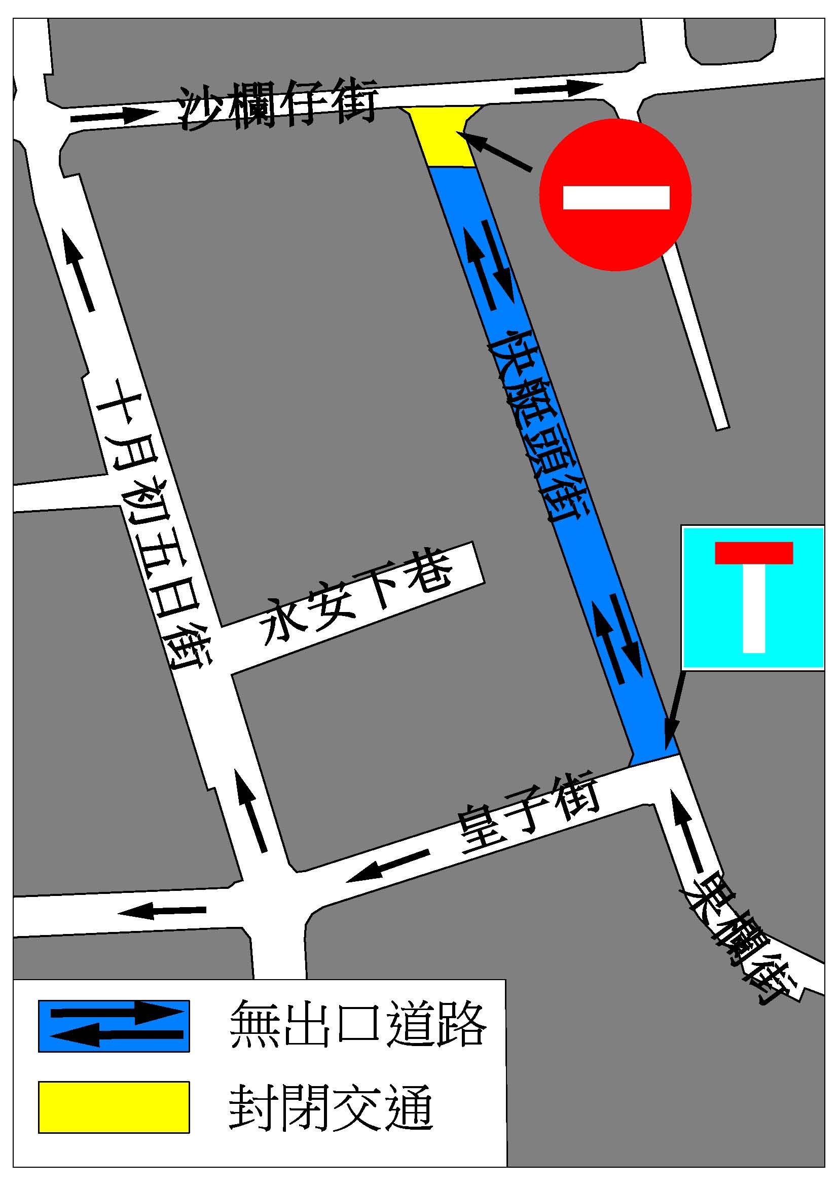 配合上述工程,介乎沙欄仔街與皇子街之間一段快艇頭街將改為無出口道路,沙欄仔街近快艇頭街的路段亦會實施有限度通車,皇子街部分咪錶泊車位亦暫時禁止泊車。交通事務局提醒駕駛者留意有關交通改動,並應遵守路上所設置的臨時交通標誌及服從交通警員指揮。如欲了解詳情,可登入交通事務局網頁www.dsat.gov.mo或交通地理資訊網traffic.gis.gov.mo。