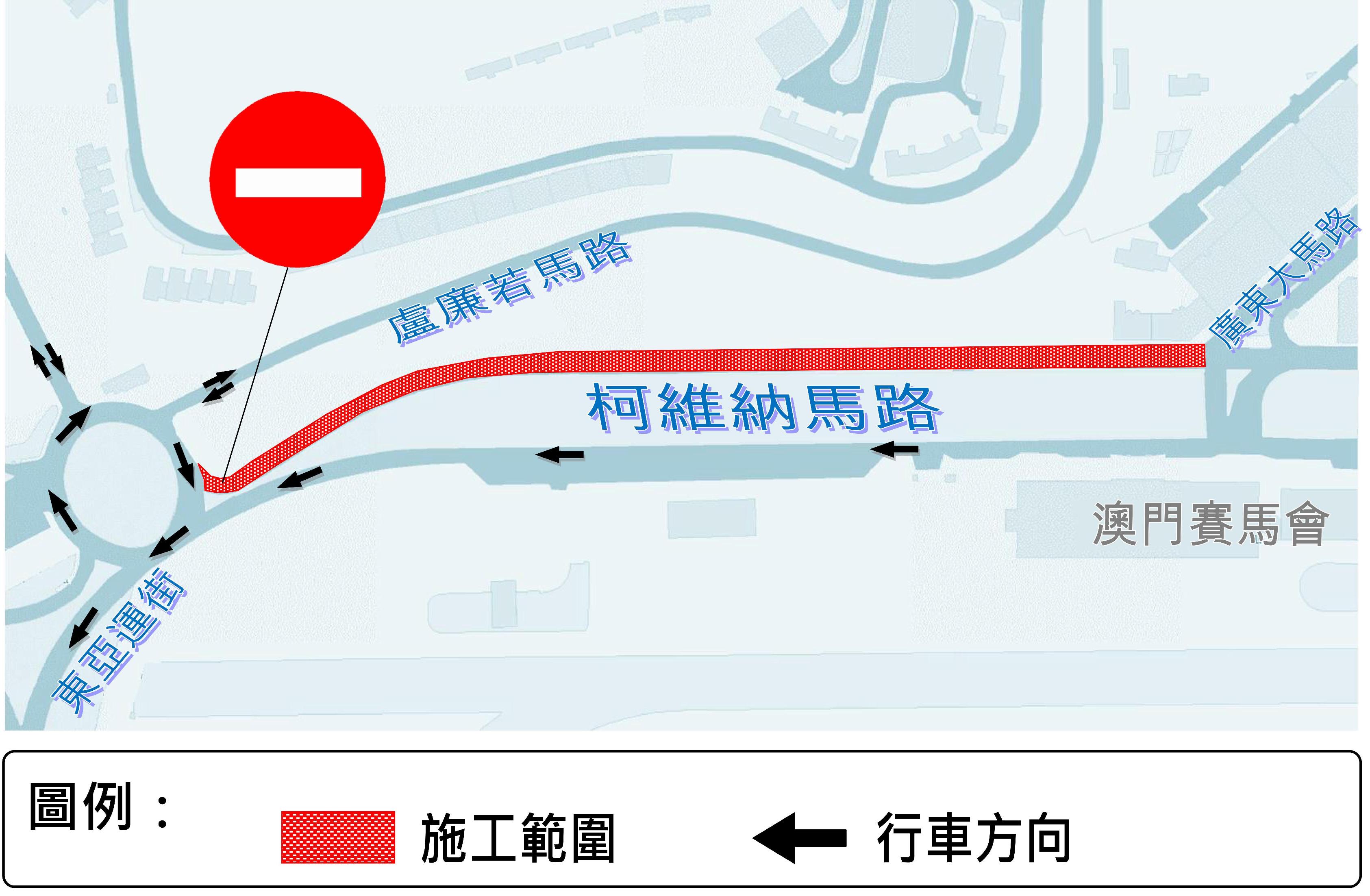 配合澳門電力股份有限公司(下簡稱“電力公司")開展電纜穿線工作,氹仔柯維納馬路往廣東大馬路方向(即名門世家對出),將於4月1日(周二)起每日凌晨零時30分至清晨6時30分臨時封閉交通,為期9日,交通事務局呼籲駕駛者留意。