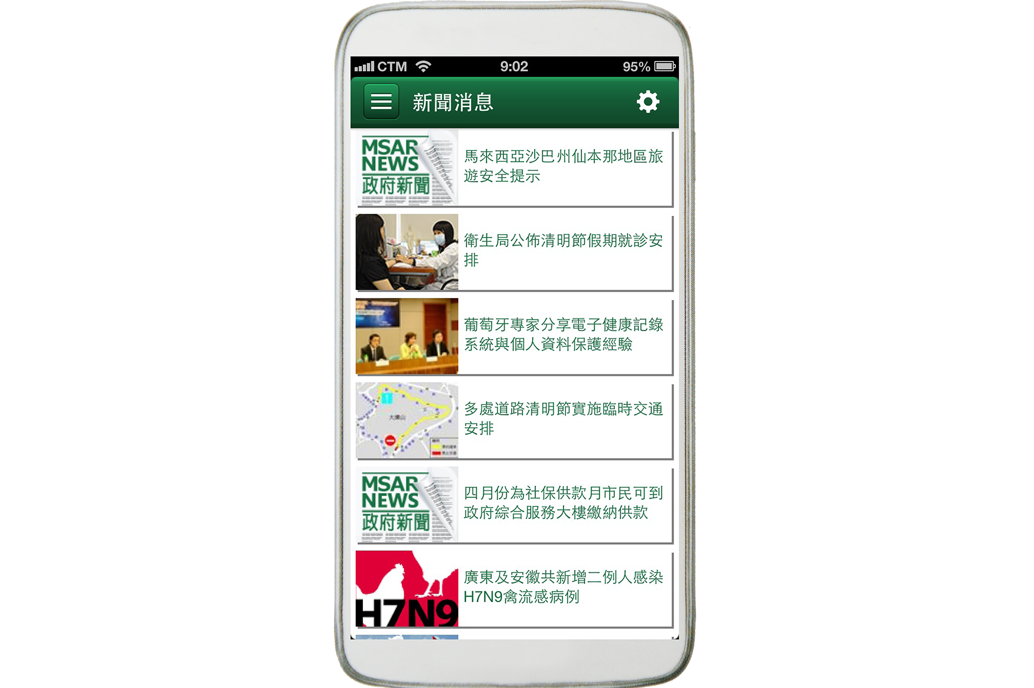 隨着社會普及使用手提電話或其他流動裝置接收資訊,新聞局推出《澳門政府新聞》應用程式,旨在加強公眾對政府施政的了解,為居民提供實時的特區政府施政訊息、官方新聞和圖片、本地實時天氣等。應用程式內容豐富,包含《新聞消息》、《圖片集》、《專題特寫》、《熱門新聞》及《熱門圖片》5大欄目。其中,《新聞消息》欄目就有13項分類供用戶訂閱。用戶還可經程式的設置功能,選擇繁體中文或簡體中文、葡文、英文使用介面及瀏覽資訊。