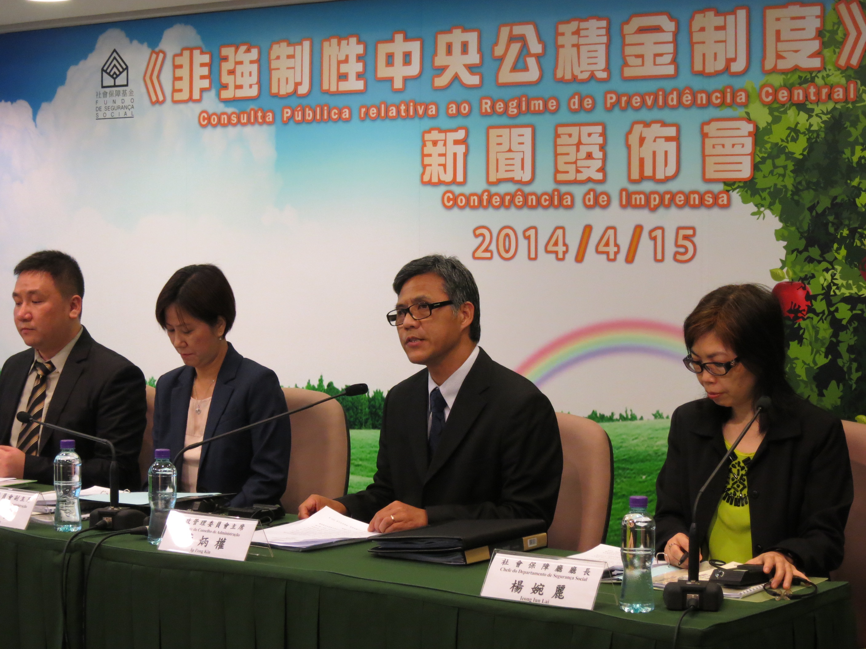 為廣泛聽取社會對《非強制性中央公積金制度》建議方案的意見,特區政府由4月15日至6月13日就方案展開為期60日的公眾諮詢。社會保障基金期望各界人士積極發表意見,共同為完善本澳居民的養老保障體系出謀獻策。