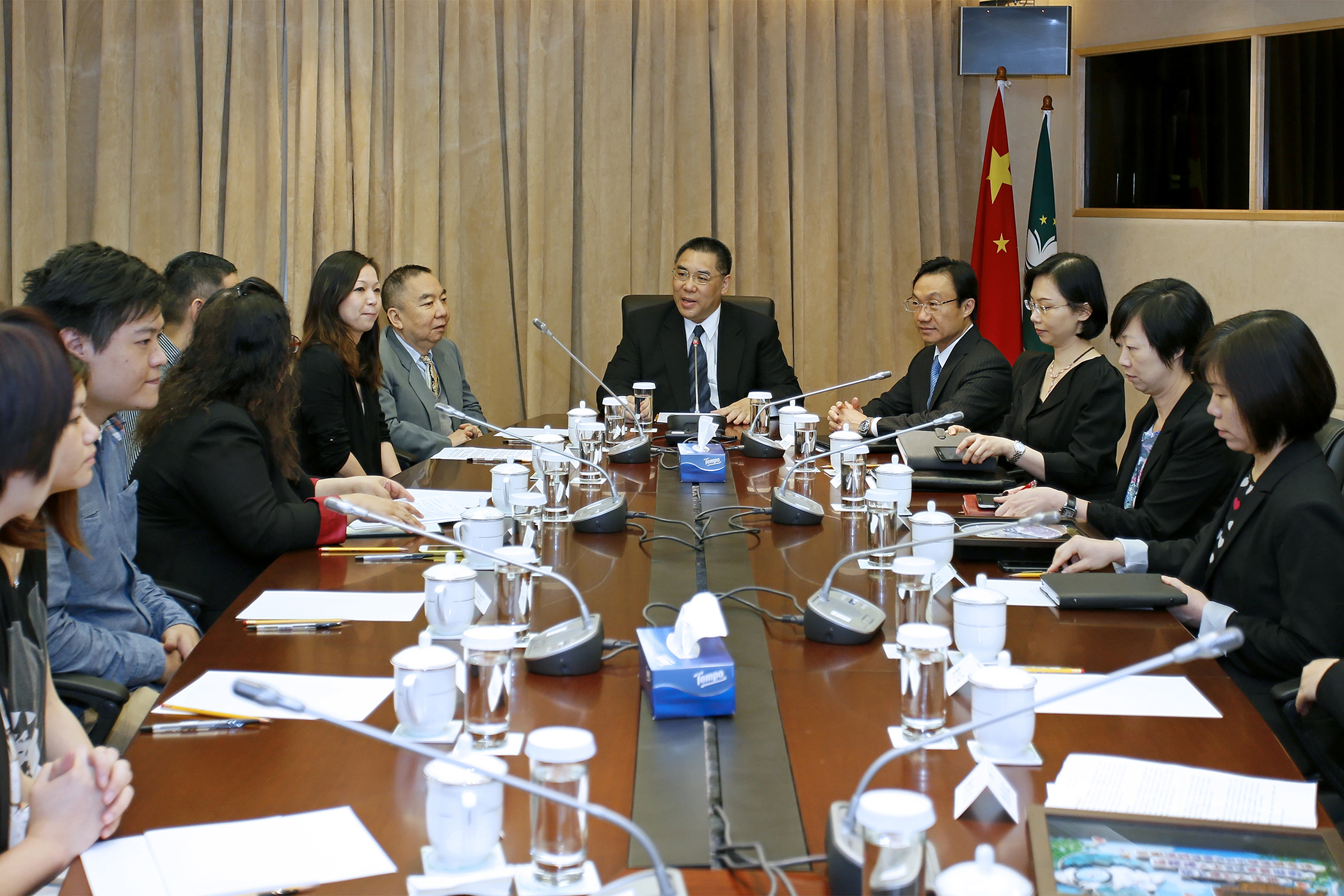 參加會見的包括行政長官辦公室主任譚俊榮、行政會秘書長柯嵐、澳門聾人協會理事長黃亞平、副理事長兼青年部部長梁華基等。