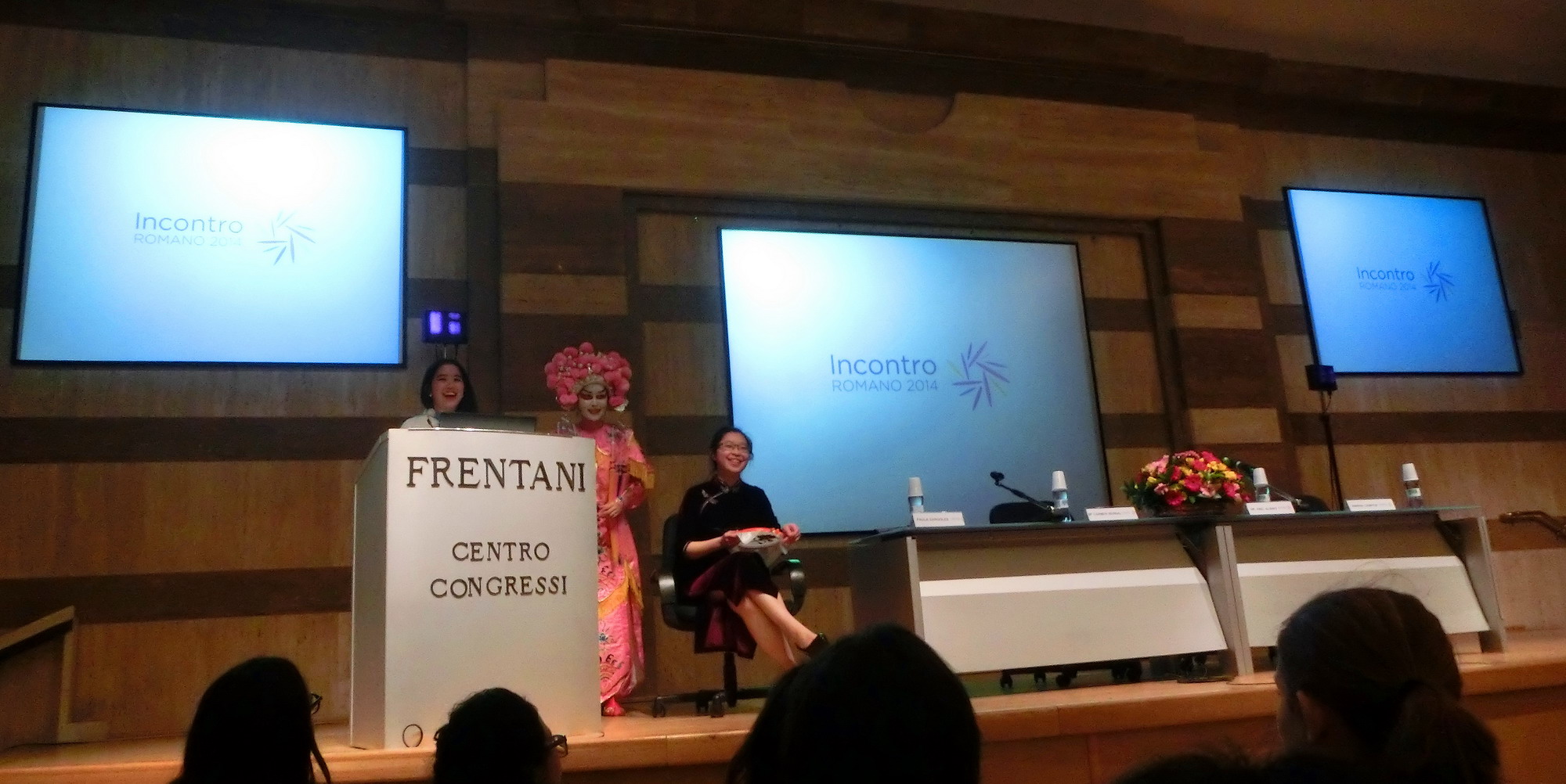 2014年羅馬國際會議的主題是 “服務的力量”,共有300多名來自澳門、美國、俄羅斯、義大利、西班牙、愛爾蘭等14個國家的學生參加。澳門旅遊學院旅遊會展及節目管理三年級學生婁歆林、唐小敏和彭露頤提交了研究論文 “服務的力量—是什麽使得無形變成有形”,由婁歆林及唐小敏代表即場解說,並在該會議的國際博覽會上展示中國傳統戲劇;另外兩名修讀相同專業的學生王超和陳奕群亦提交了論文“培訓創造不同”。