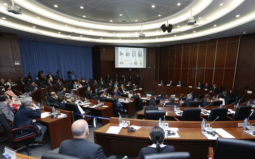 澳大校長趙偉、副校長(研究)馬許願與一眾葡語師生與葡國總統席爾瓦一行在新校園會面,並介紹大學最新發展,以及與其他葡語大學的交流合作情況。趙偉表示,席爾瓦是第一位參觀新校園的國家總統,也曾到過舊校園參觀,創造了國家領導人同時參觀過新舊校園的歷史。席爾瓦提到之前向國家主席習近平表示非常希望到訪澳大,很高興今次能到訪。他還歡迎澳門的學生到葡萄牙學習,希望澳門和葡萄牙兩地可開展更多的合作。同時,他指現時使用葡語的國家及地區廣泛,葡語具有發展潛力,學習葡語的職業前景也很好。現時葡萄牙與中國已建立良好的關係,希望日後可以進一步加強大學、科研及葡語教學的交流。