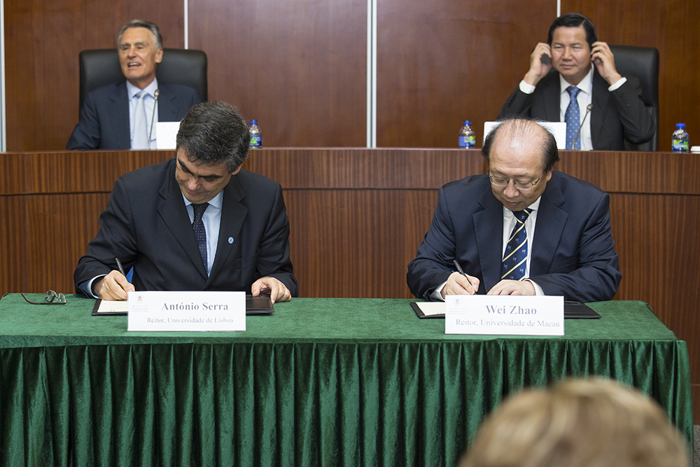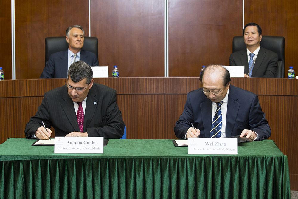 在葡國總統席爾瓦、國務部長兼外交部長Rui Machete、教育科技部長Nuno Crato,澳門特區政府社會文化司司長張裕和馬許願的見證下,澳大分別與里斯本大學及米尼奧大學簽署了關於教育學術合作的諒解備忘錄。由趙偉與里斯本大學校長António Cruz SERRA和米尼奧大學校長António M. CUNHA代表大學簽署。澳大與上述兩校長久以來均有合作,是次簽署將加強其教學人員、學系、研究單位之間的聯繫和合作,如舉辦教學人員互訪講座、研討會、課程和研究活動,並透過學生學習指導、學生交流、教學課程、教學人員與學生研究項目等方式展開合作,主要合作領域為葡萄牙研究(在兩所葡萄牙大學)以及中國和亞洲研究(在澳大)。