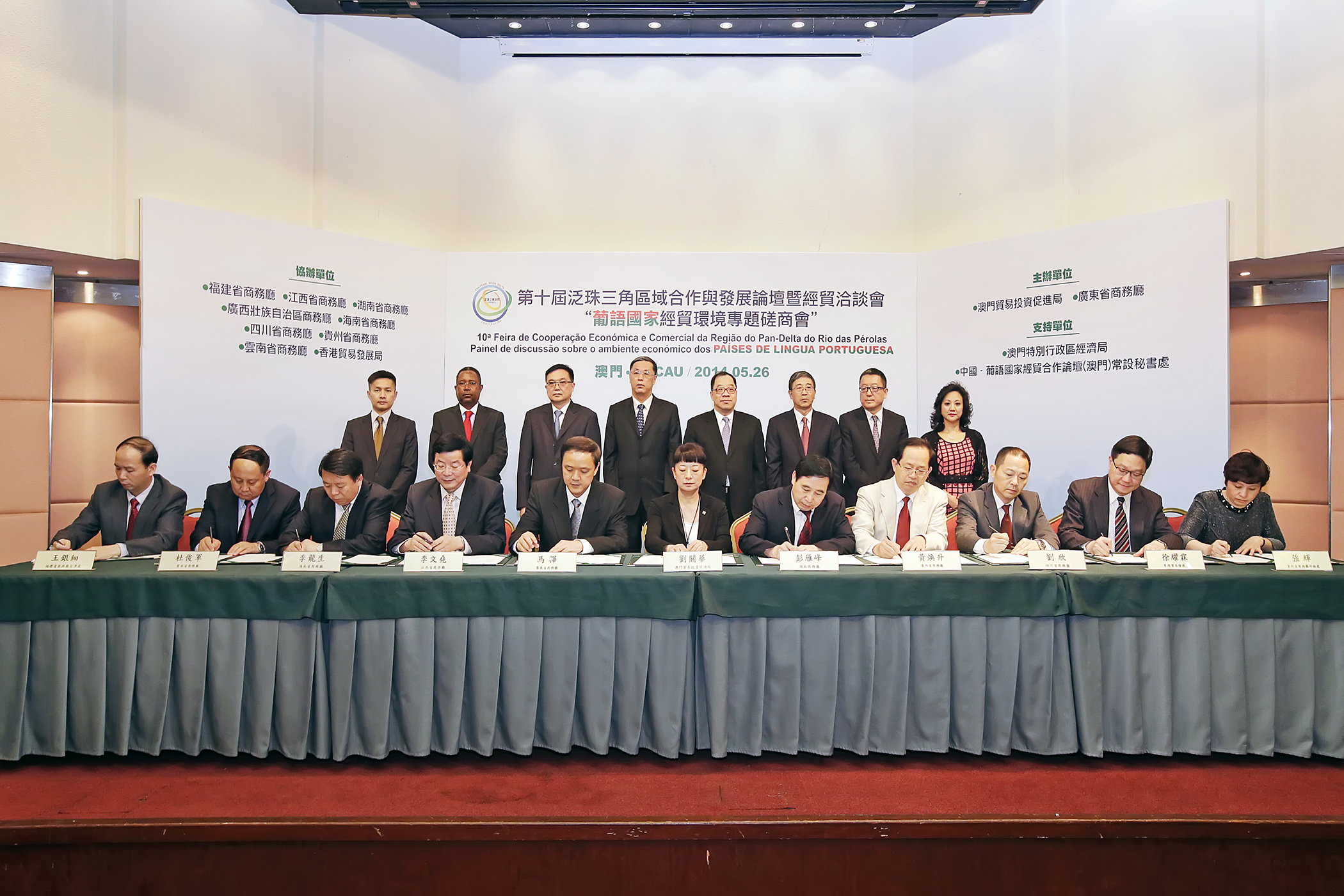由經濟財政司譚伯源司長等擔任主禮嘉賓的 “葡語國家經貿環境專題磋商會”今(26)日在澳門舉行,正式拉開“第十屆泛珠三角區域合作與發展論壇暨經貿洽談會”前期活動的帷幕,該磋商會由澳門貿易投資促進局和廣東省商務廳共同舉辦。