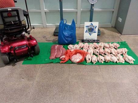 在海關近期打擊水客走私未經檢疫之肉類及家禽進入本澳的行動中,仍發現有電動輪椅的使用者走私肉類進入本澳情況。於2014年5月25日,關閘海關站在打擊水客的行動中,截獲一名乘坐電動輪椅由珠海進入關閘邊檢大樓的澳門永久性居民(女性,48歲),在其電動輪椅前面的購物籃及輪椅椅背所掛的手提袋內共發現32.5公斤未經檢疫之肉類及雞隻,其中包括27隻已屠宰雞隻(共重23.5公斤)及9公斤豬肉。根據資料顯示,於2010年8月上述人士亦曾用相同的途徑從事走私肉類進入本澳。