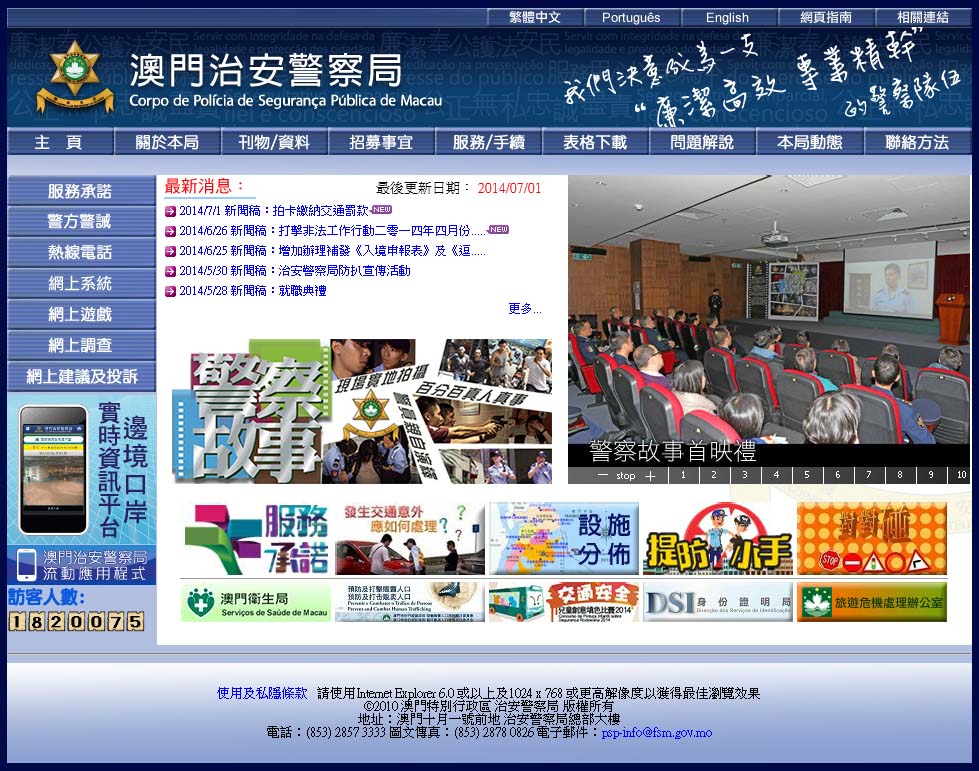 影片圍繞服務市民的警察心,展現警察撲滅罪行、救急扶危的機智和勇敢,更重要的是每一個案都因著市民的指引或協助,從而夠能迅速、有效地處理事件,充分體現 “警民合作”的重要性。治安警察局藉此感謝社會各界一直的支持,現誠邀廣大市民瀏覽治安警察局網頁(www.fsm.gov.mo/psp) 或於政府辦公時間(週未及假期則由上午9時至下午5時)親臨兵營斜巷澳門保安部隊事務局博物館免費觀賞。