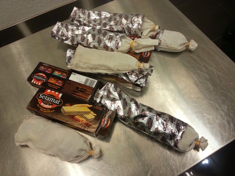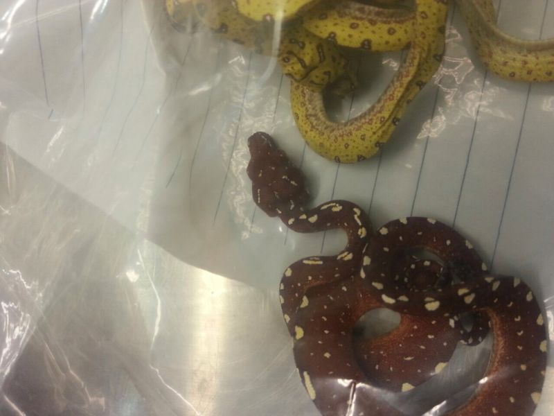 於2014年7月10日早上約10時30分,澳門國際機場海關站人員檢查一名從新加坡來澳之台灣籍王姓旅客(男姓、48歲),期間透過x光檢查其手提行李時發現行李內之五盒朱古力威化餅內藏有疑似小蛇之動物,經檢查後確實為41條細小活蛇。隨後經民政總署園林綠化部人員檢驗後,證實該批細小活蛇屬蟒蛇類,屬瀕危野生動物種,受預先許可制度監管。該名旅客聲稱該批細小蟒蛇在新加坡以每條約250至300元人民幣購入,準備運往內地作繁殖之用。上述旅客在沒有向海關申報之情況下進口上述受瀕危野生動植物種國際公約保護之41條細小活蛇,其行為違反了第45/86/M號法令第一條所述之規定,有關違反可被科處最高澳門幣五千圓之罰款,海關已對王姓旅客提起實況筆錄。
