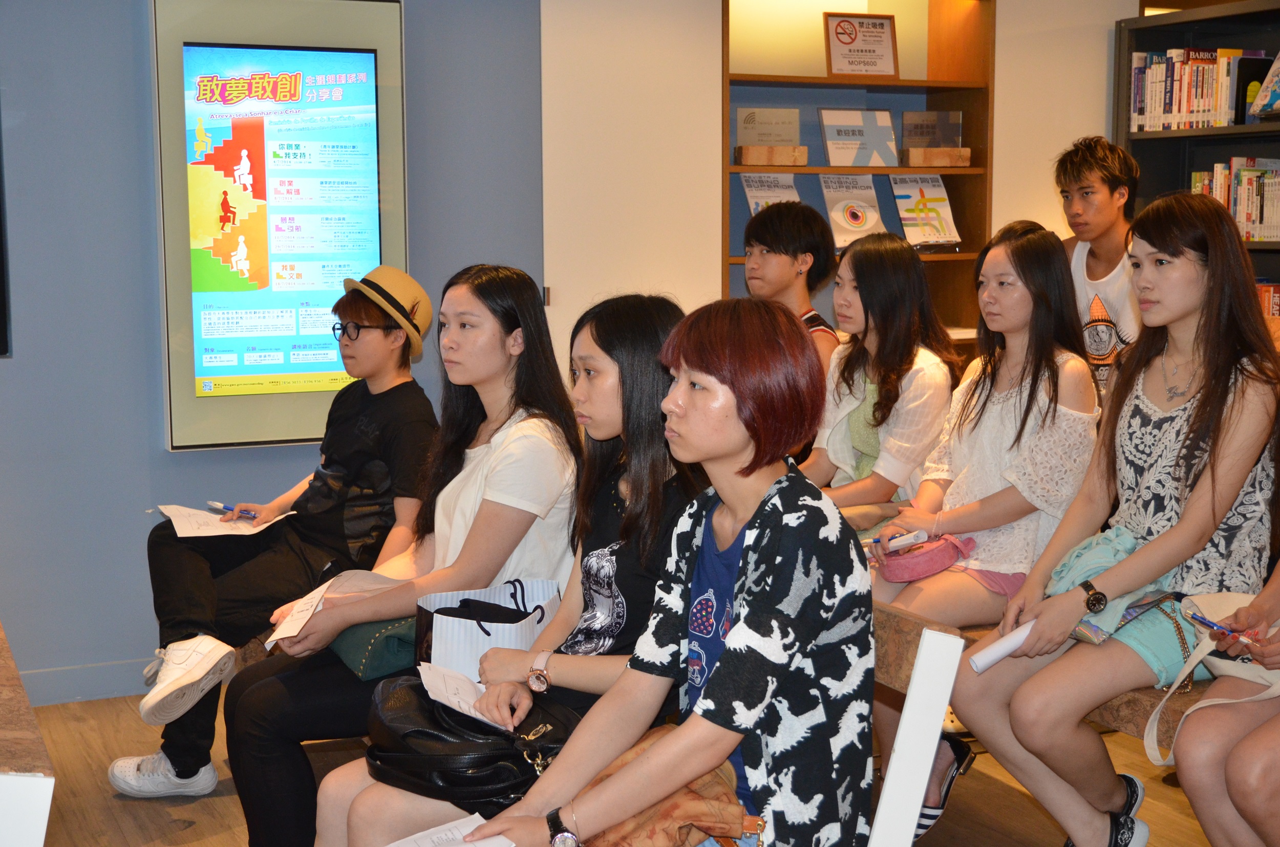 高教辦於7月一連推出五場以生涯規劃為題的“敢夢敢創──生涯規劃系列分享會”,先後邀請了經濟局代表詳細介紹《青年創業援助計劃》的內容和注意事項,澳門生產力暨科技轉移中心主席楊俊文、文創界林子恩、商界劉鳳愷和黃若禮分享創業、文化創意和實現夢想點滴,成效理想。