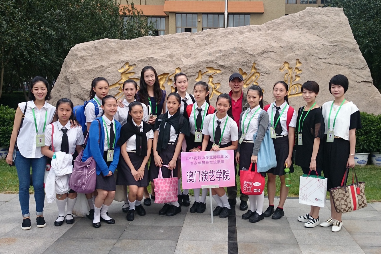 文化局澳門演藝學院舞蹈學校日前赴北京參加“第五屆中國舞蹈節——二零一四海峽兩岸地區青少年舞蹈交流展演”,由舞蹈學校校長高成明、副校長何軍妮率領全日制舞蹈技術課程高二級師生及舞台技術人員一行十八人代表澳門參與一連五日的舞蹈交流展演活動,收獲豐碩。