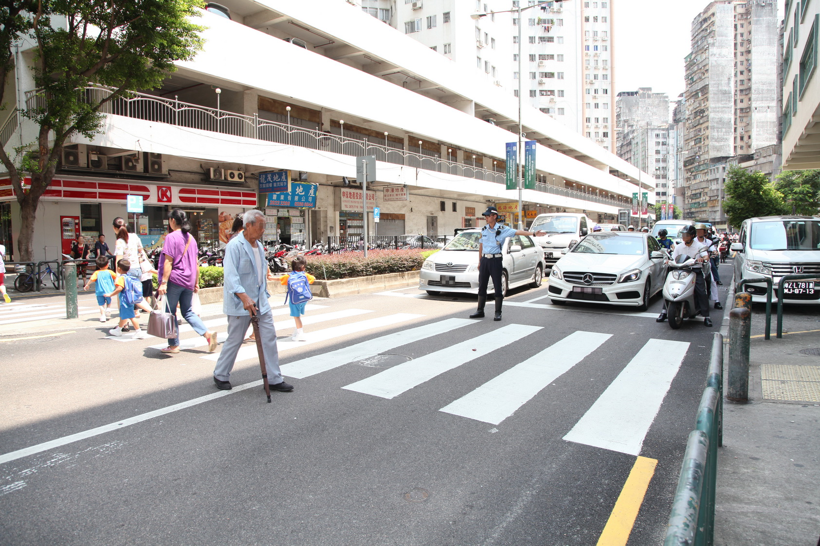 針對學童在道路上安全之情況,治安警察局聯同交通事務局在開學初期展開專門檢控行動,安排前線巡邏警員及交通輔導員於學校上下課期間進行指揮交通及檢控違規情況,藉著以行動加強駕駛者及家長對學童的交通安全意識。今日早上,兩局在林茂海邊大馬路一帶,針對行人違規過馬路、駕駛者不讓行人、對電單車違規乘搭六歲以下的小童以及輕型汽車前座乘搭十二歲以下小童的駕駛者進行檢控行動。