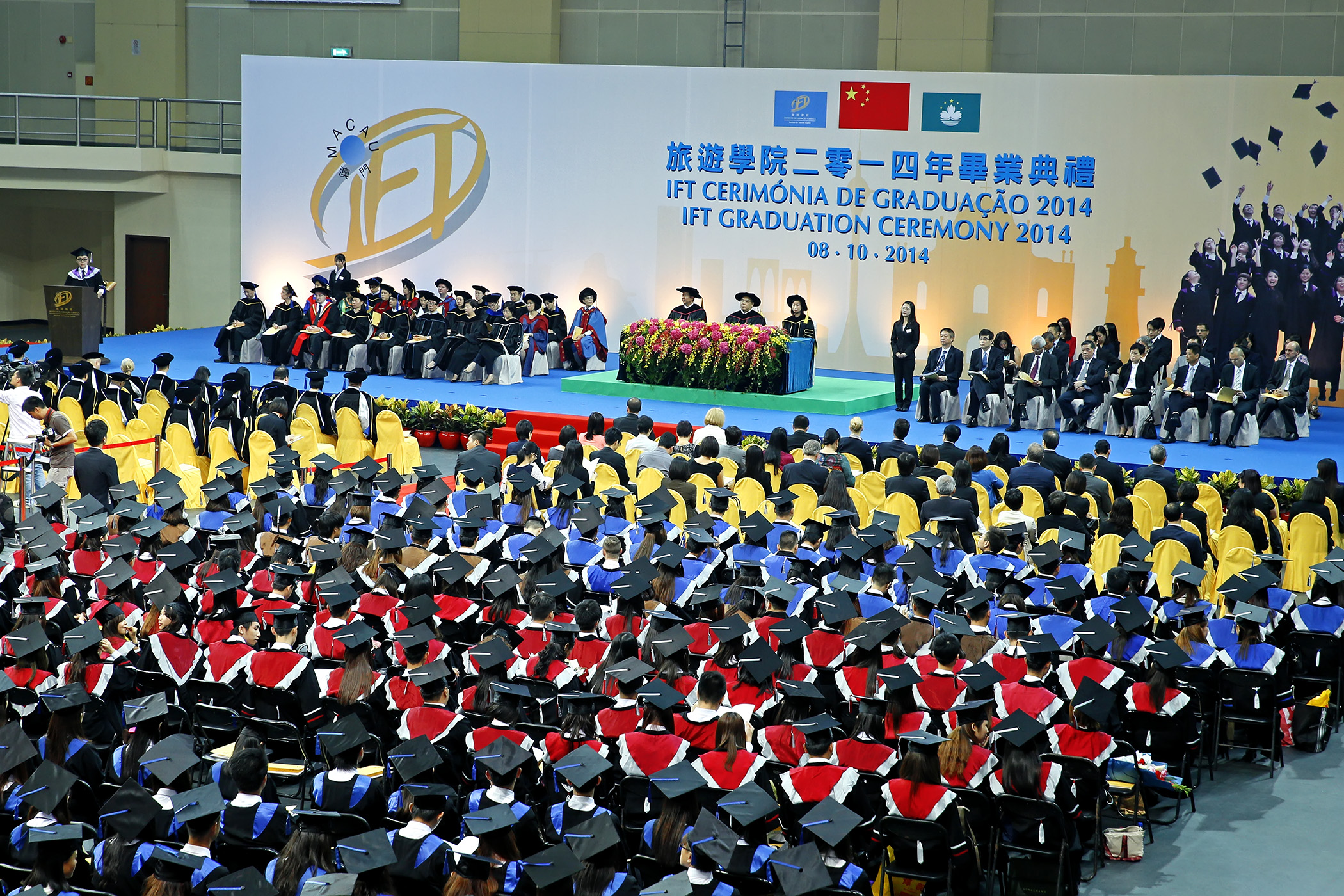 旅遊學院2014年畢業典禮下午在塔石體育館舉行,崔世安致辭時首先祝賀畢業的學生。他表示,特區政府堅決貫徹“教育興澳”、“人才建澳"的施政理念,把培育各類人才、推動經濟適度多元、促進人的全面發展,作為教育政策的着力點。