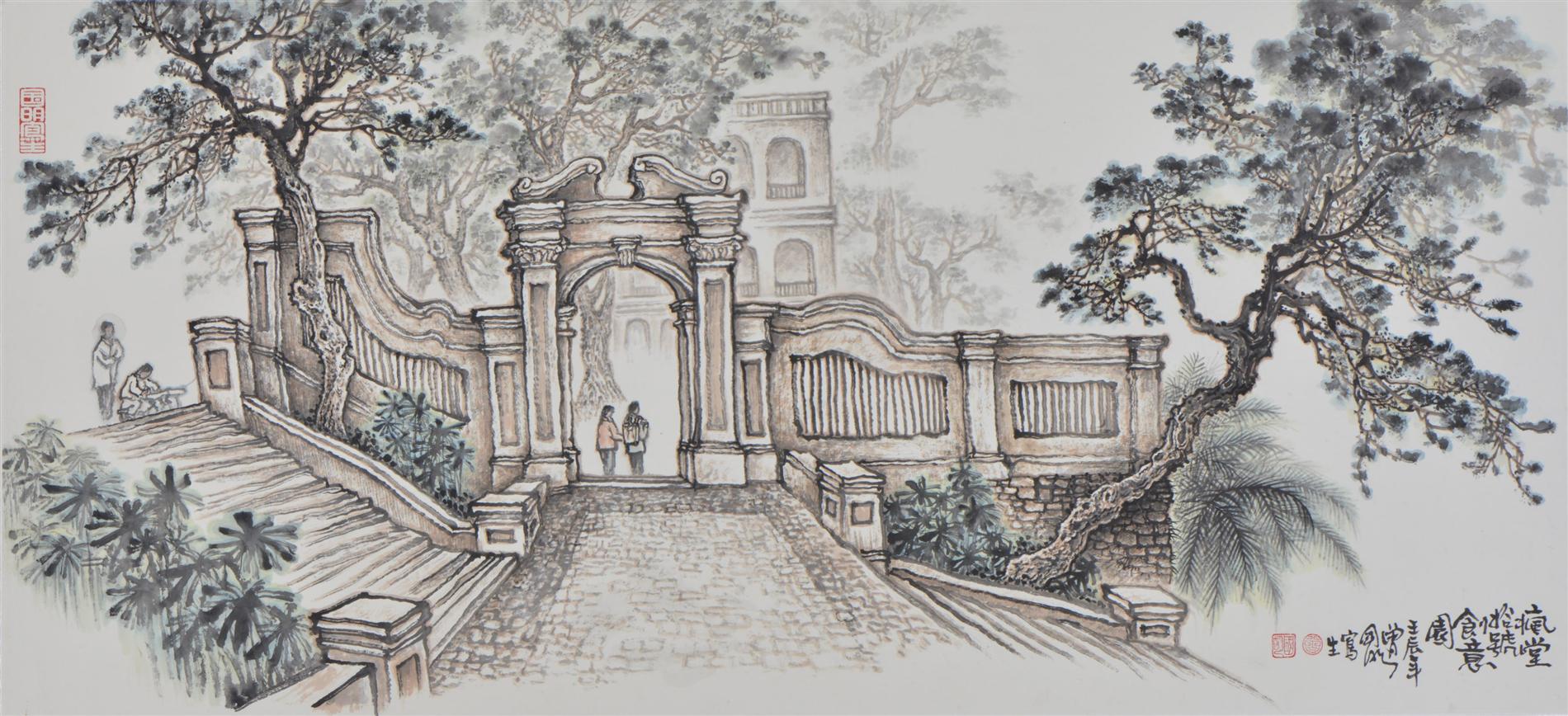 所謂“仁者樂山,智者樂水",曾國明的山水將傳統和自然的造化,皆融入精神之中,他的畫無疑予人看到中國畫線與點的魅力。其喜以鋼筆對花卉寫生,花瓣中筋脈,疏密有序,走向自然且忠實於對象的固有結構,故其花卉鮮艷且生氣盎然。