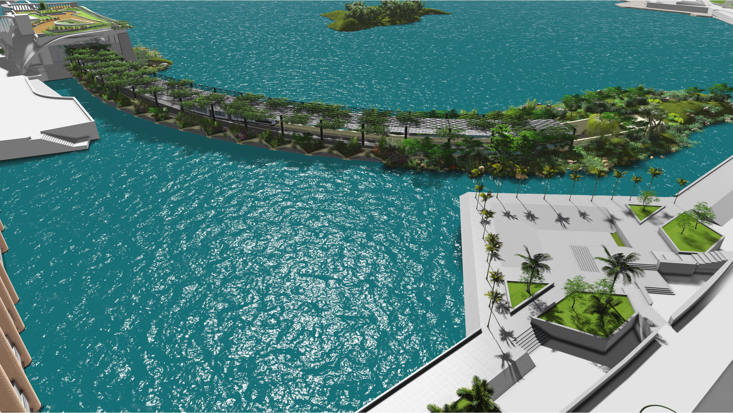 會上,運建辦代表向文遺會介紹南段的設計工作進展情況。當中,南灣站以湖內人工島嶼作為設計概念,將站體外觀美化並融入南灣湖的景觀。而離開南灣站入湖的過渡斜坡路段,主體結構亦儘量降低至南灣湖景大馬路的水平視線以下;另一方面,設計單位亦對過渡斜坡的設計提出初步構思,擬透過綠化和湖內的景觀元素,與南灣湖景觀達致融合。