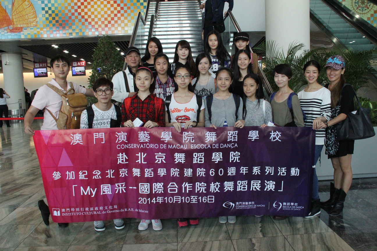 文化局澳門演藝學院舞蹈學校赴北京參加北京舞蹈學院於十月十日至十六日舉行的 “My風采-國際合作院校舞蹈展演”,由文化局副局長梁曉鳴、澳門演藝學院舞蹈學校校長高成明、副校長何軍妮率領全日制舞蹈技術課程高三級師生團隊一行二十二人代表澳門出席活動。