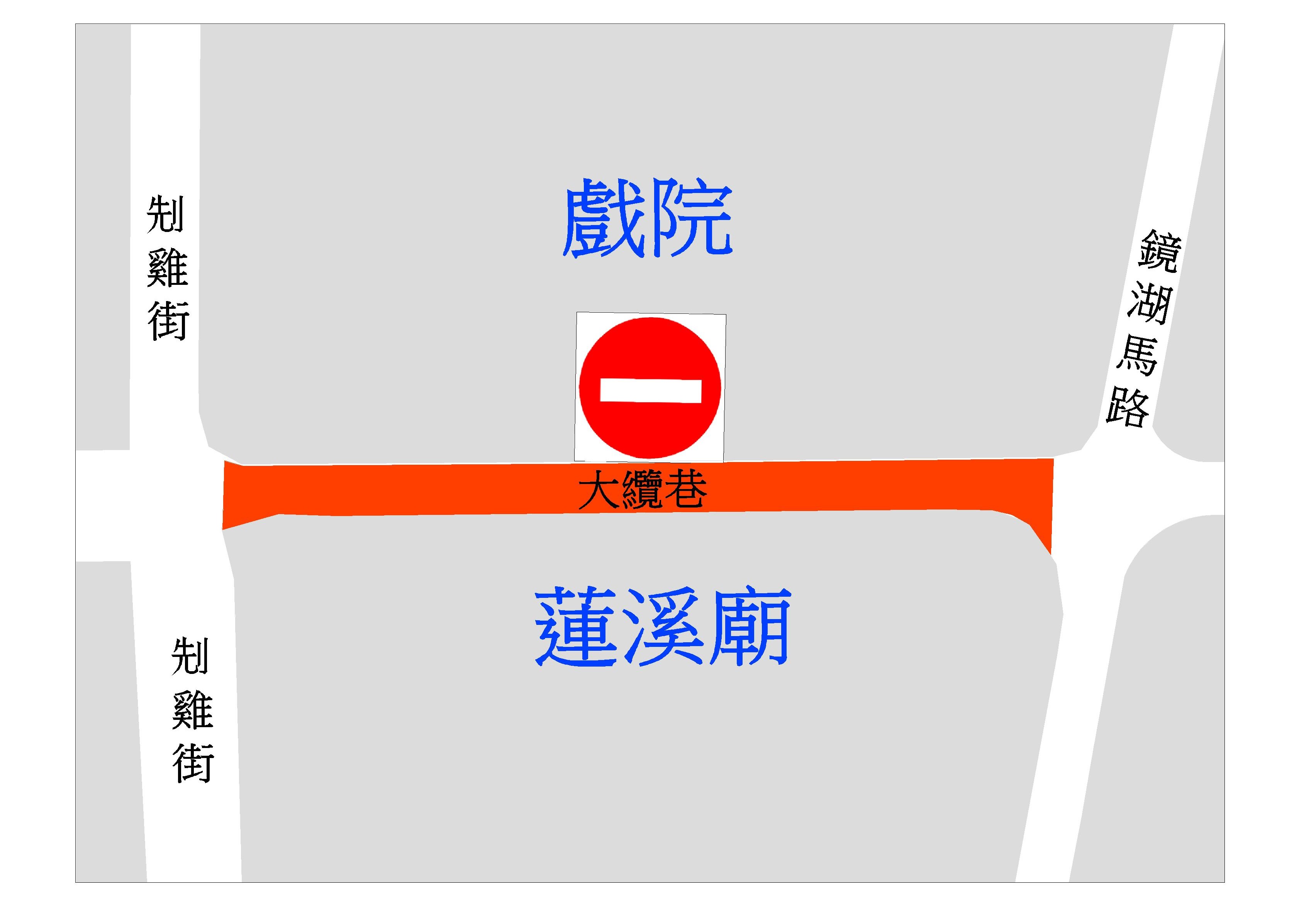 配合新橋區坊眾互助會舉辦恭祝華光寶誕活動,介乎(先刂)雞街與鏡湖馬路之間的一段大纜巷,由本月20日(周一)至23日(周四)每日下午5時至晚上11時實施有限度通車;其中,本月21日(周二)活動舉行當日中午12時至下午2時,上述路段會臨時封閉,禁止車輛通行及停泊。交通事務局呼籲駕駛者留意。