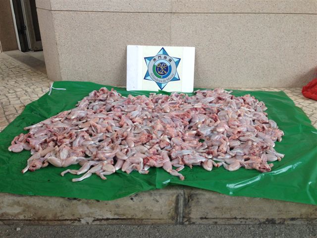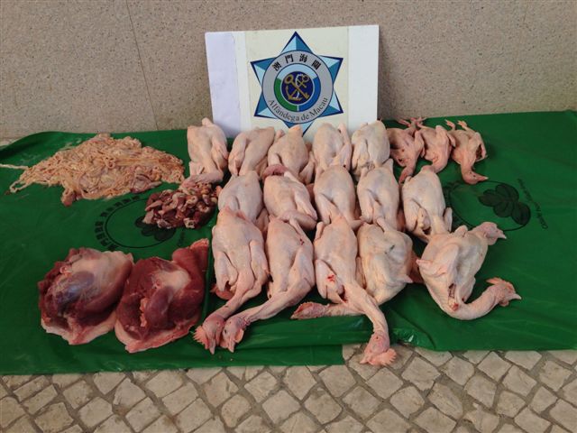 為打擊一些未經檢疫的肉類流入澳門,澳門海關行動管理廳關員加強市面巡查,在本月15日及20日共查獲三宗收集非法進口未經檢疫肉類的案件,行動中共檢獲93公斤已宰家禽、田雞、豬肉及豬內臟等物品;一名本澳居民及四名持內地通行證人士被邀往海關總部協助調查。