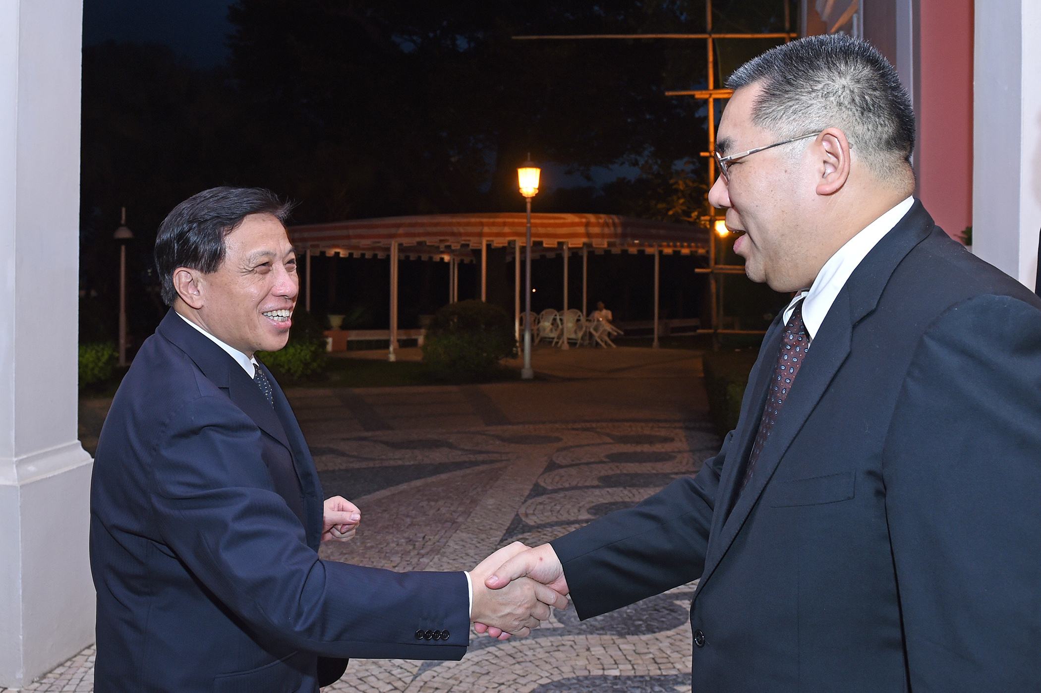 中央駐澳聯絡辦公室主任李剛、外交部駐澳特派員公署特派員胡正躍、外交部港澳台司司長詹永新及行政長官辦公室主任譚俊榮參加會見。