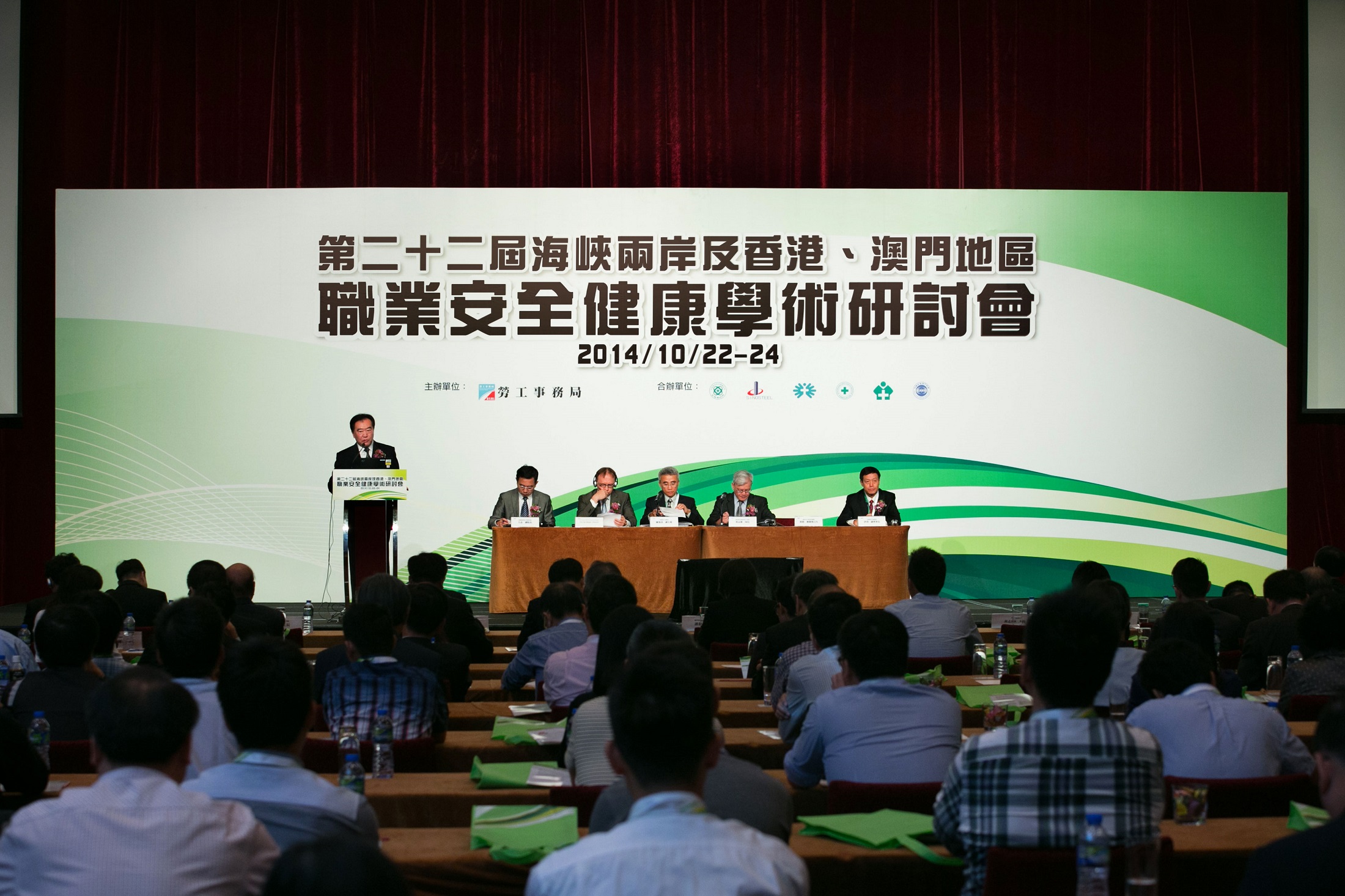 今年的「海峽兩岸及香港、澳門地區職業安全健康學術研討會」已踏入第二十二屆,由勞工事務局於澳門主辦,研討會開幕禮由澳門特別行政區經濟財政司譚伯源司長、勞工事務局黃志雄局長以及來自兩岸四地的合辦和邀請單位代表共十二位嘉賓主禮。譚伯源司長在開幕禮上致辭表示,憑著勞資官三方共同努力,澳門職安健工作取得了一定的成果,但仍期望透過各界努力,吸收各地的先進經驗,共同推進地區性的職安健發展。而多位嘉賓於主題演講中發言,分享、交流在職安健方面的最新形勢與管理等經驗。