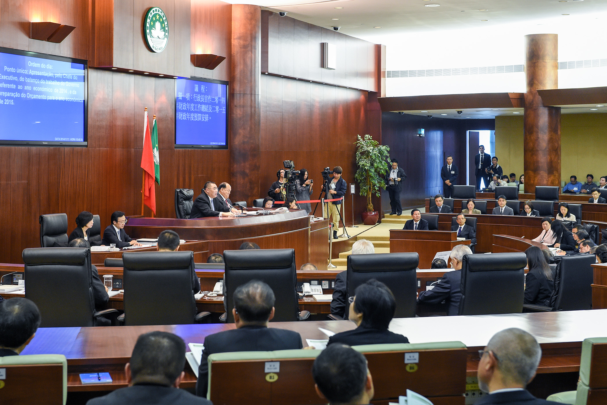 崔世安稱,2015年財政年度的施政報告將由下一屆政府於明年首季向立法會提交。為確保特區的穩定和發展、維持各公共部門的正常運作、符合有關法律的要求,政府制訂了2015年財政年度基本財政預算,主要包括各公共部門正常運作所必須的行政開支、政府已承諾並須於明年支付的開支、明年首季進行的工程撥款。