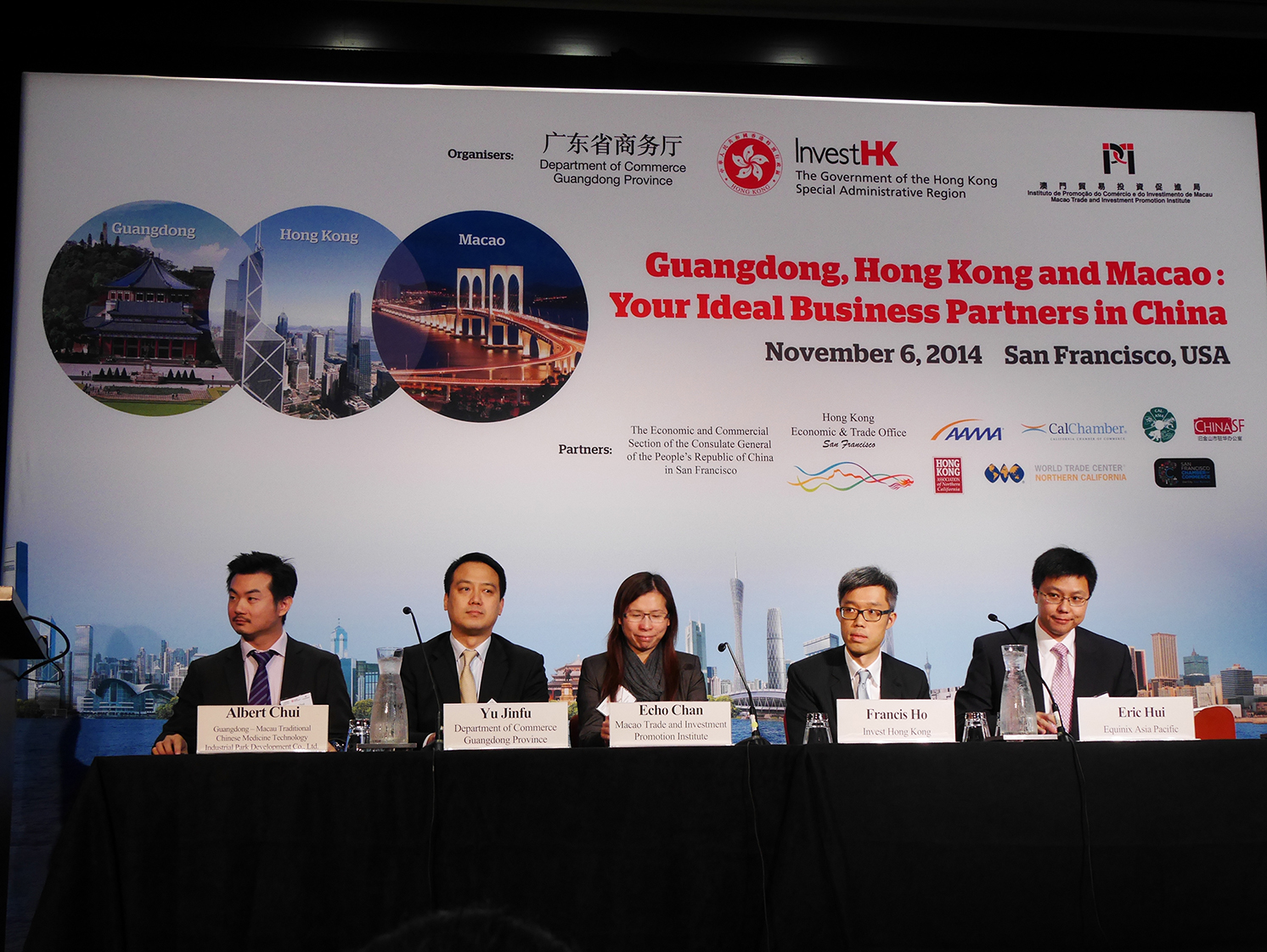 兩場推介會上發言的嘉賓還包括:中國駐溫哥華總領館經濟商務參贊俞善君、中國駐舊金山總領館經濟商務參贊夏翔、廣東省商務廳公平貿易局局長及投資促進處處長余金富、香港投資推廣署助理署長何兆康、加拿大卑詩國際貿易廳廳長屈潔冰、香港駐多倫多經濟貿易辦事處處長盧潔瑋及香港駐三藩市經濟貿易辦事處處長周舜宜等。