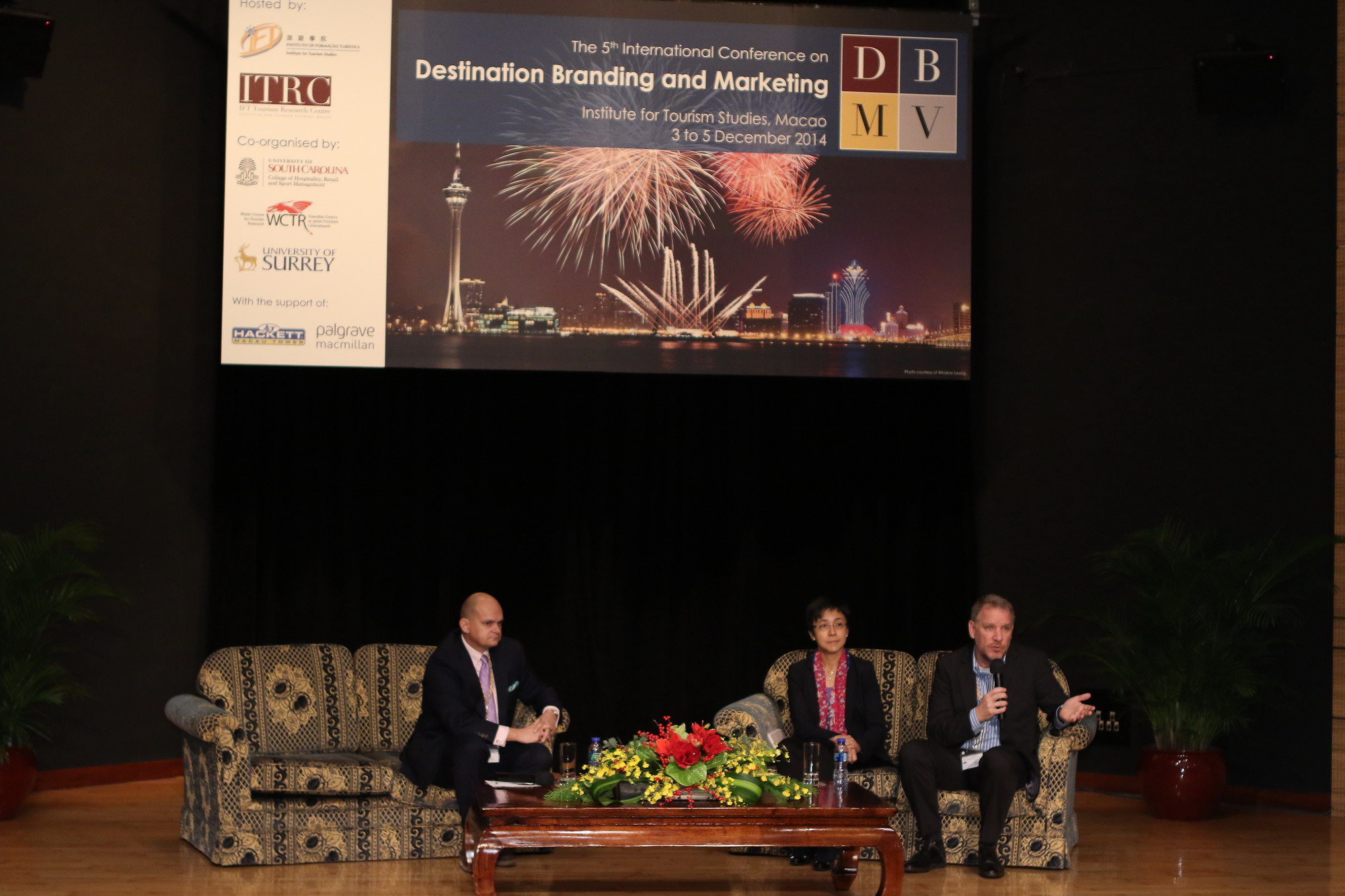 在會議開幕儀式上,旅遊學院院長黃竹君博士以會議主持的身分致開幕辭和歡迎辭。本屆會議聚集了旅遊目的地營銷學術界、業界和旅遊機構的代表,探討眾多旅遊目的地和社區在現今分秒必爭、社交媒體精通的世代,建立獨創性和持久品牌的眾多挑戰及有效的目的地品牌戰略。除了旅遊學院旅遊業研究暨科研中心外,今屆會議的協辦單位包括美國南卡羅萊納大學酒店、零售及運動管理學院、英國卡迪夫城市大學威爾士旅遊研究中心及英國薩里大學。